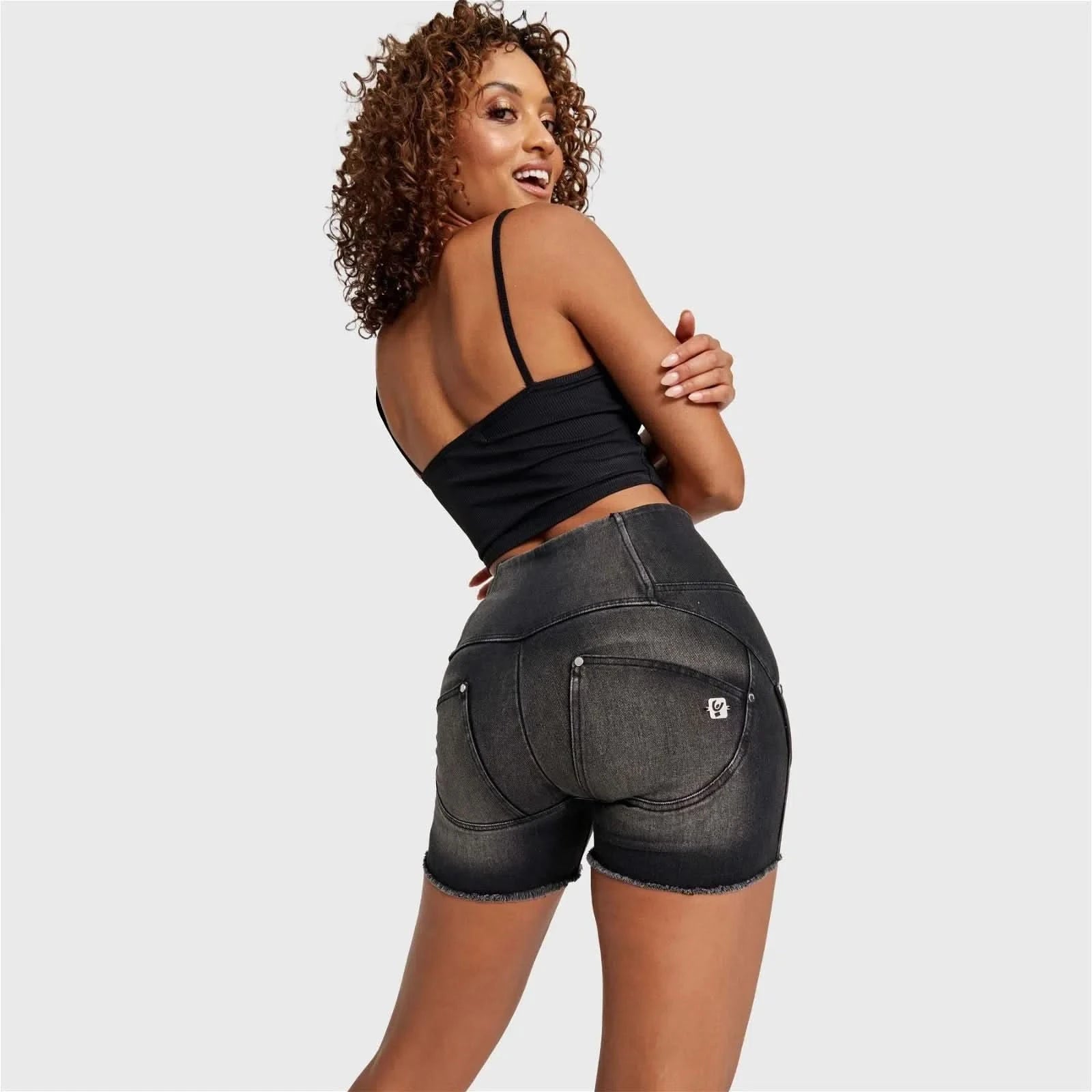 WRUP SNUG Jeans - High Waisted - Shorts - Black + Black Stitching