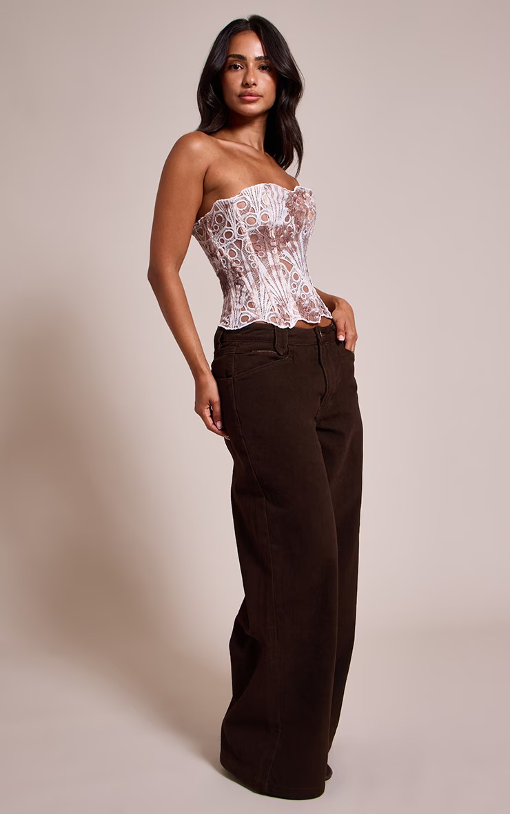 • Women's Random Pattern Lace Up Shapewear Tube Top, Elegant Contrast Lace Corset Top, Tummy Control Shapewear for Women