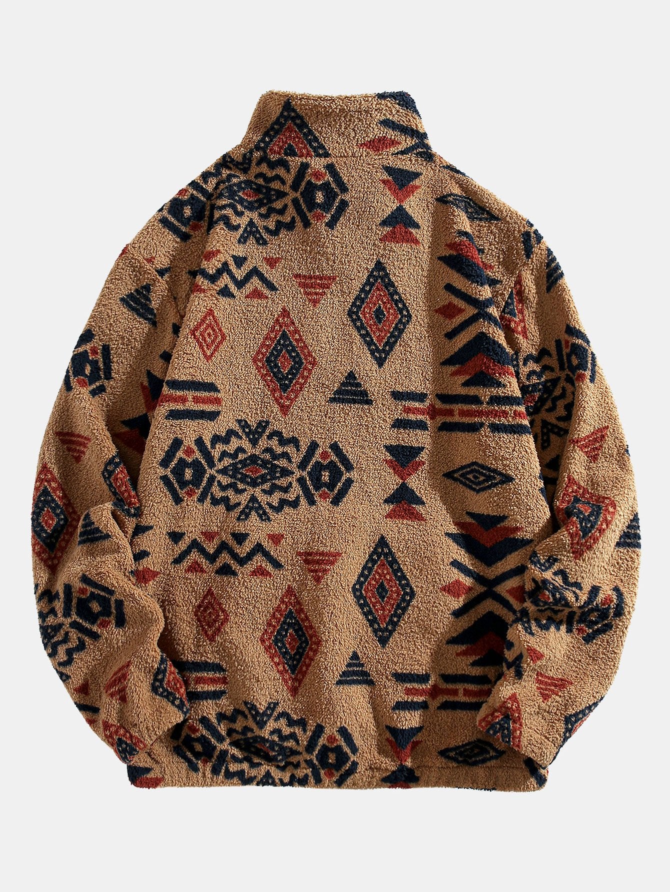 • Ethnic Pattern Drop Shoulder Zipper Sweatshirt, Regular Fit Casual Comfy Long Sleeve Stand Collar Pullover for Fall & Winter