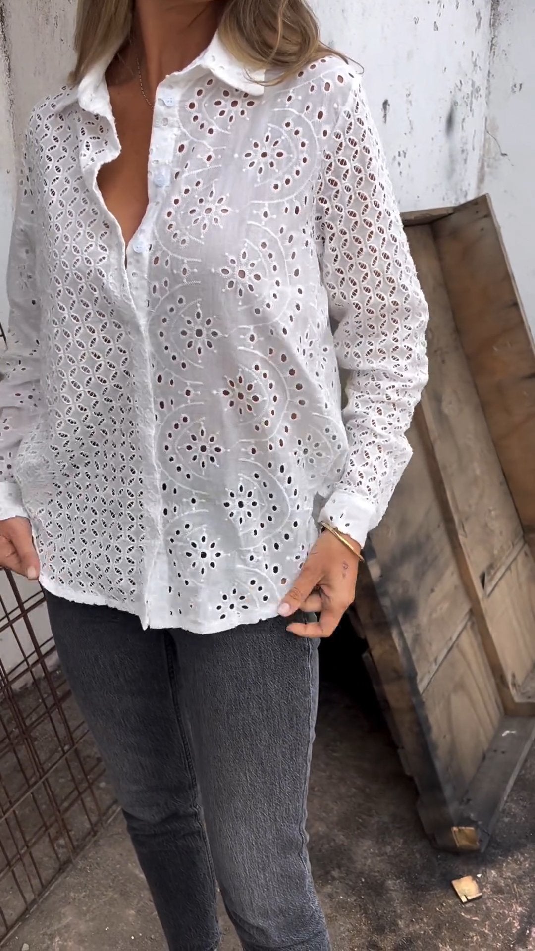 White Shirt with Hollow Design