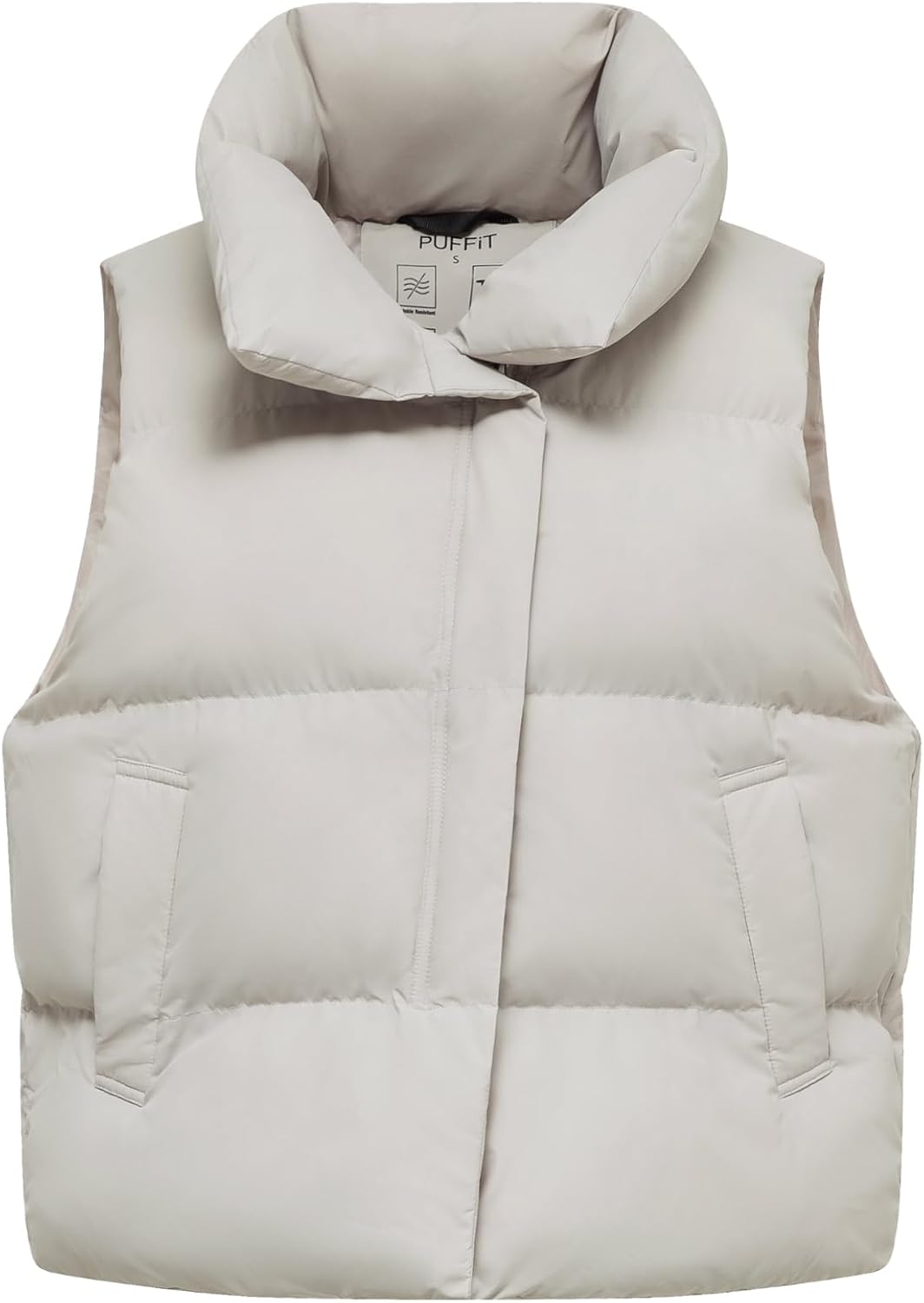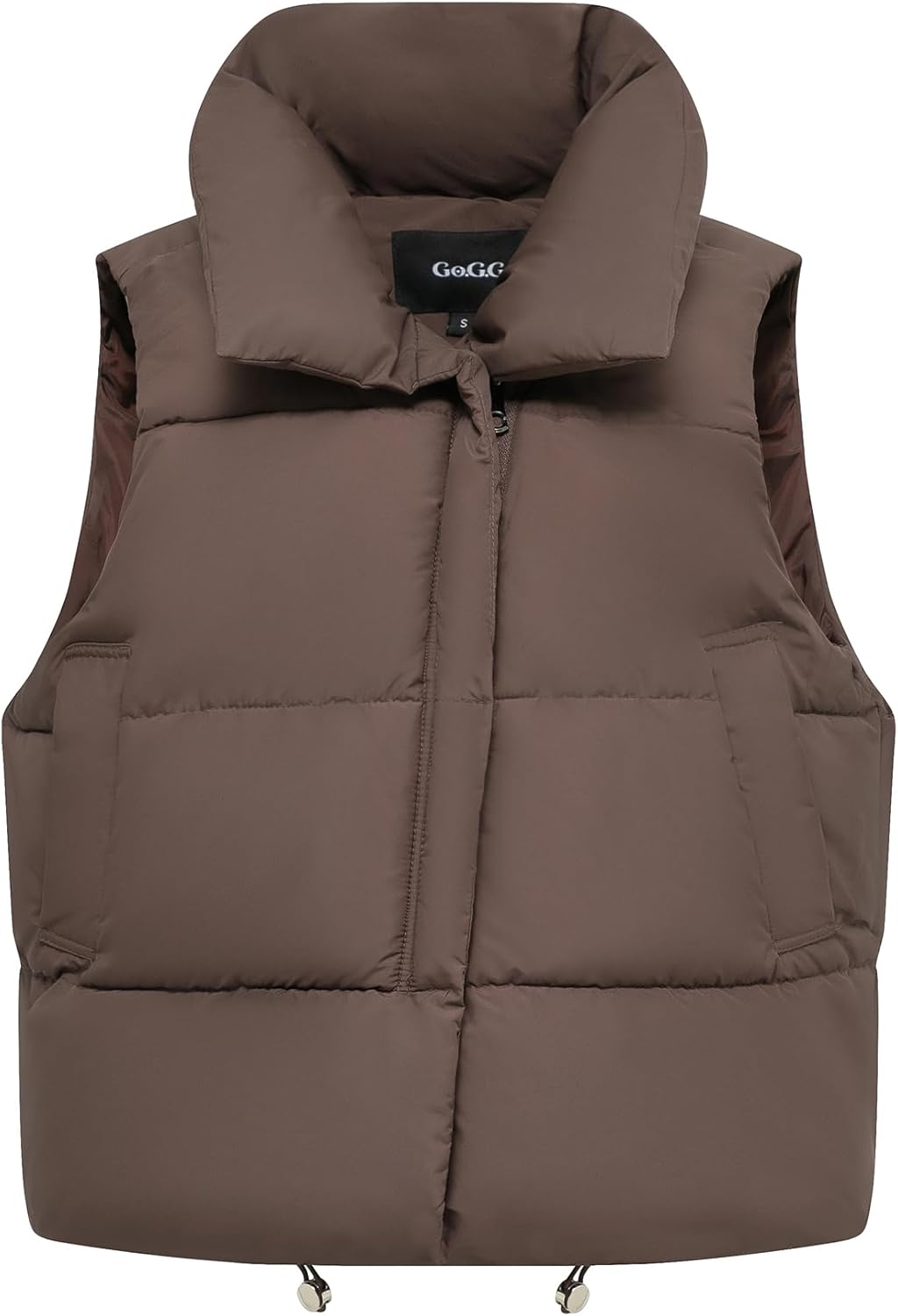 • Women Puffer Vest, Oversized Sleeveless Cropped Winter Vests Outerwear, Versatile Padded Warm Puffy Gilet Trendy