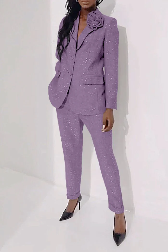 Women's Casual Sequined Shiny Slim Pants Two-piece Suit
