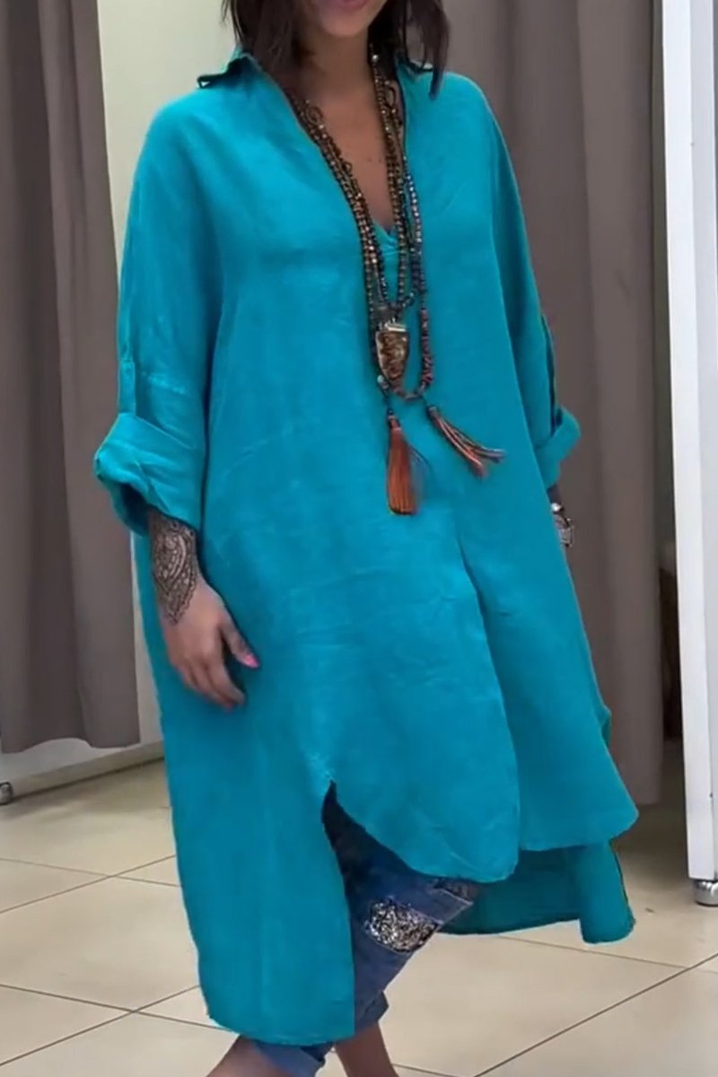 Women's Casual Solid Color Cotton Linen Long Sleeve Top