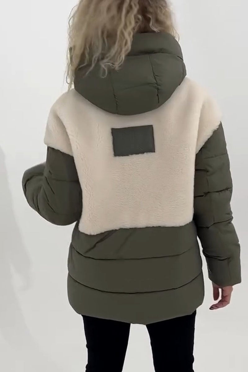 Women's Casual Solid Color Plush Patchwork Zipped Jacket