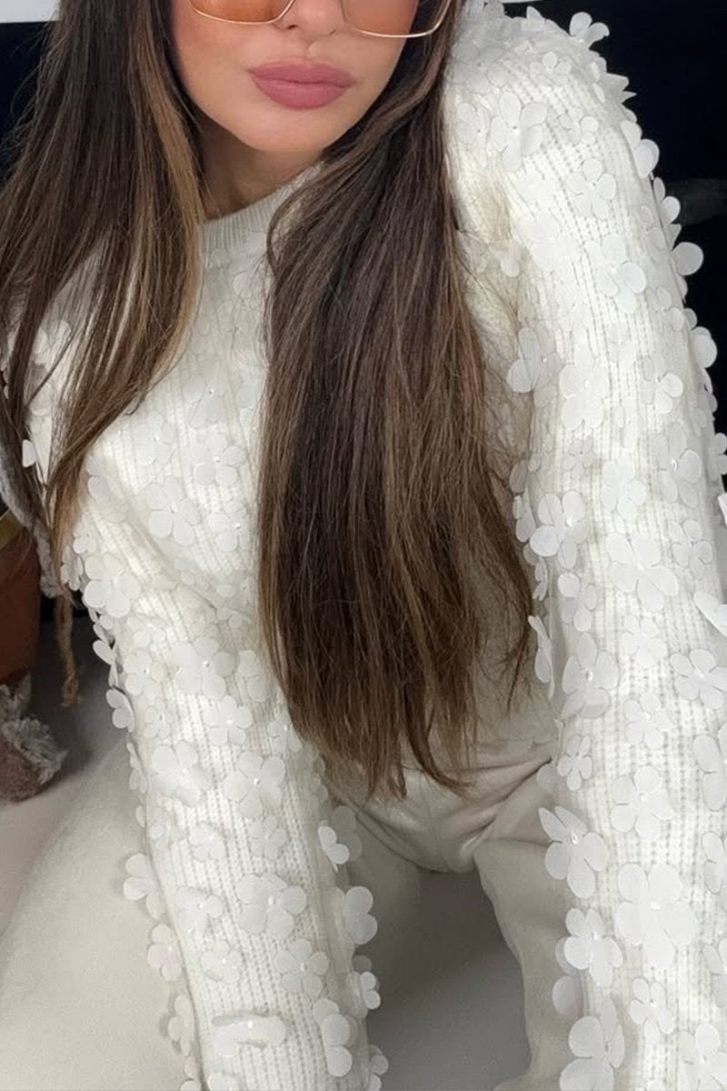 Women's Casual Solid Color Round Neck Floral Sweater
