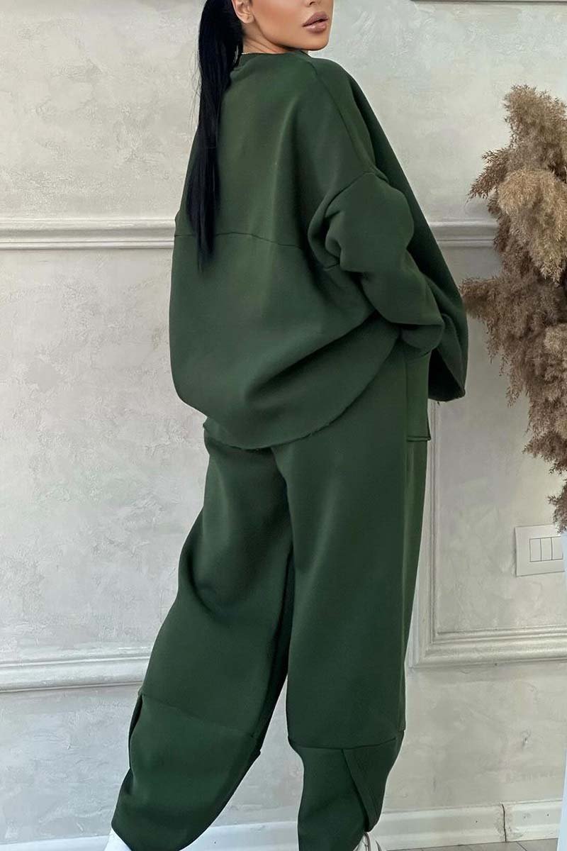 Women's Casual Solid Color Round Neck Long Sleeve Sweatshirt Sports Suit