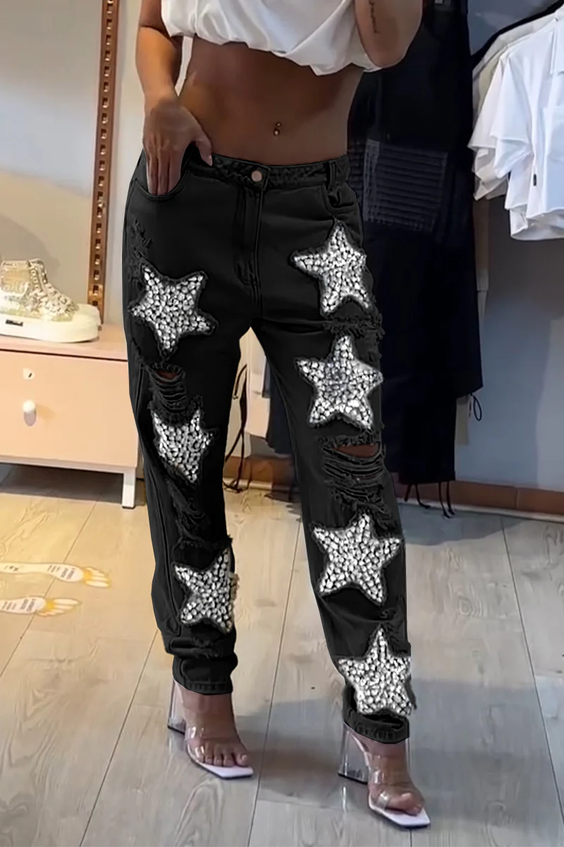 Women's Casual Star-studded Ripped Jeans