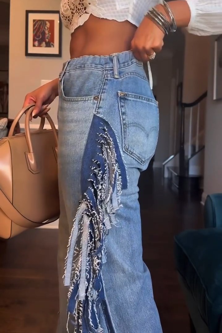 Women's Fashion High Rise Side Tassel Wide Leg Jeans