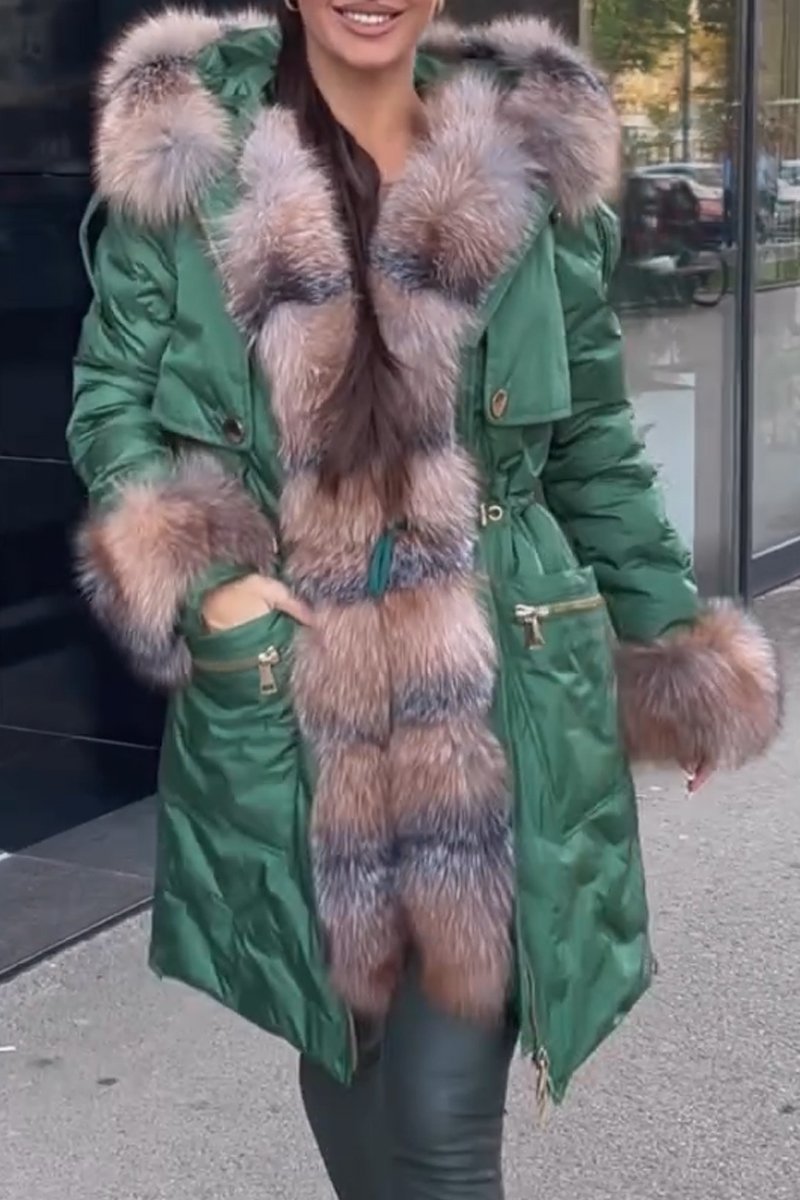 Women's fur collar and sleeves down overcoat