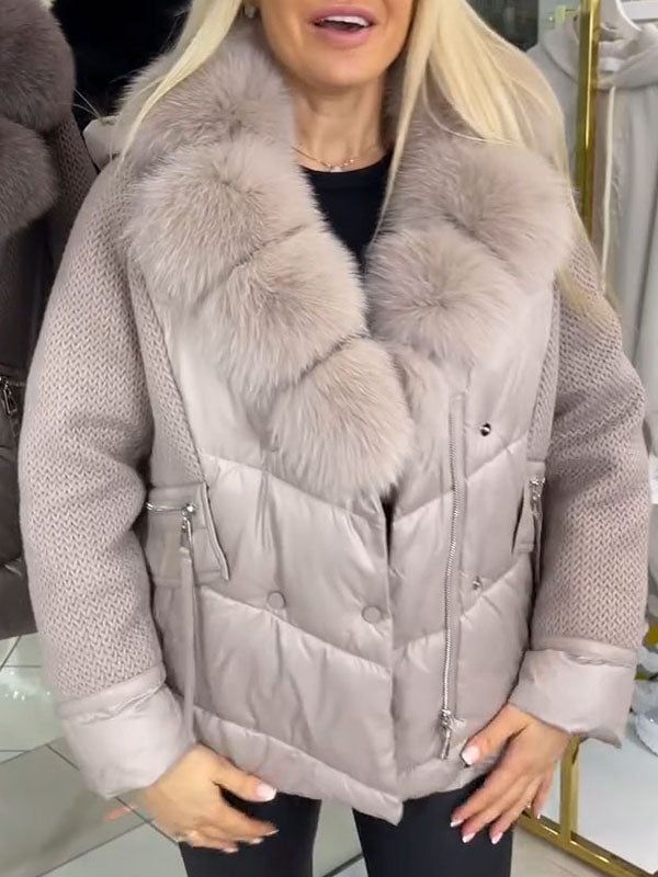 Women's Fur Collar Patchwork Hooded Coat