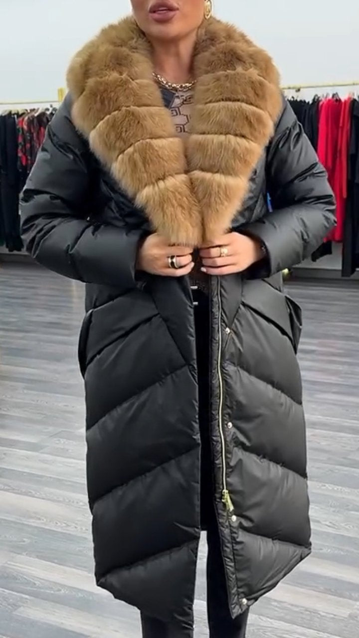 Women's Large Lapel Furry Casual Cotton Long Coat