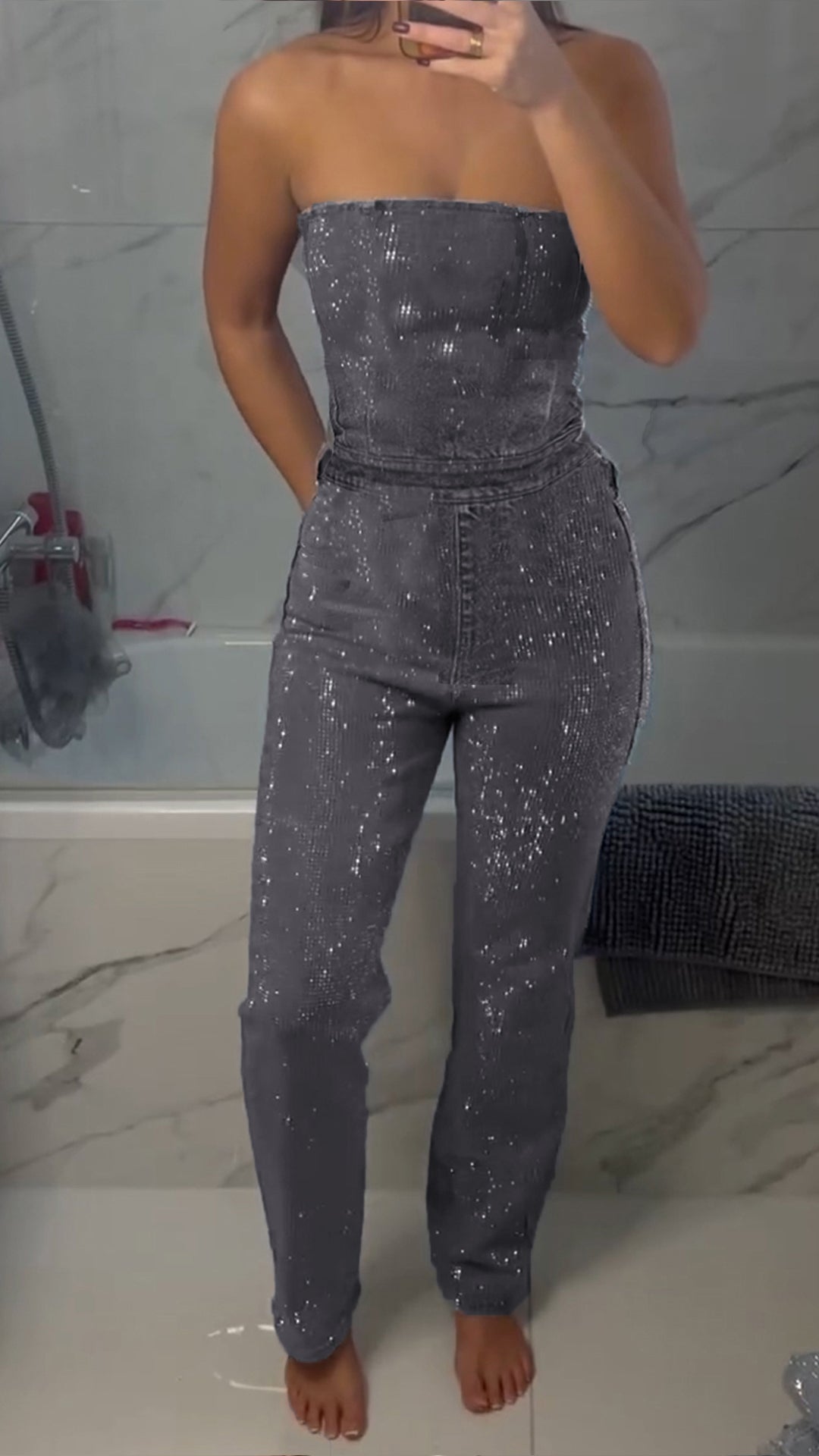 Women's Rhinestone Tube Top Slim Jumpsuit