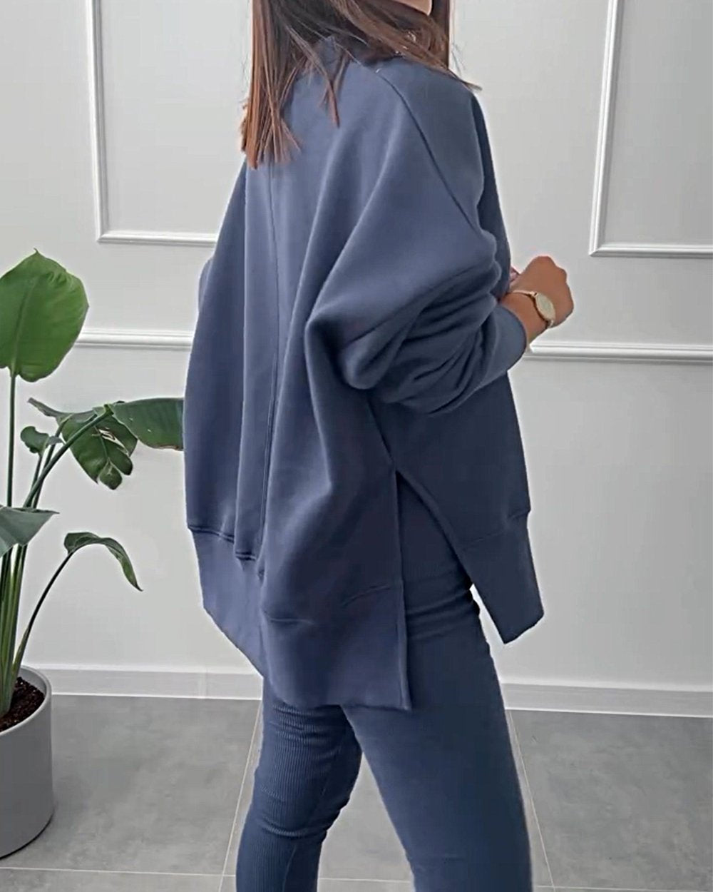 Women's Solid Color Casual Pullover Sweatshirt Two-piece Set