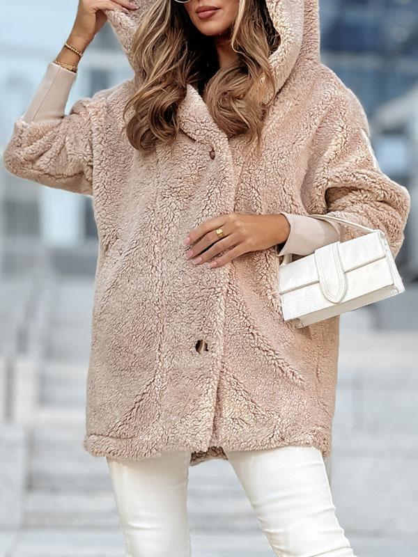 Women's Solid Color Hooded Plush Coat