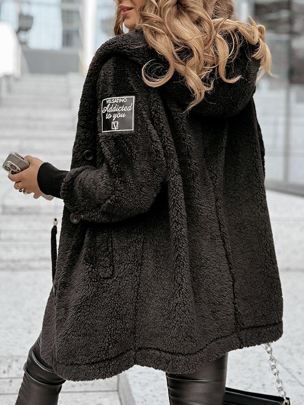 Women's Solid Color Hooded Plush Coat