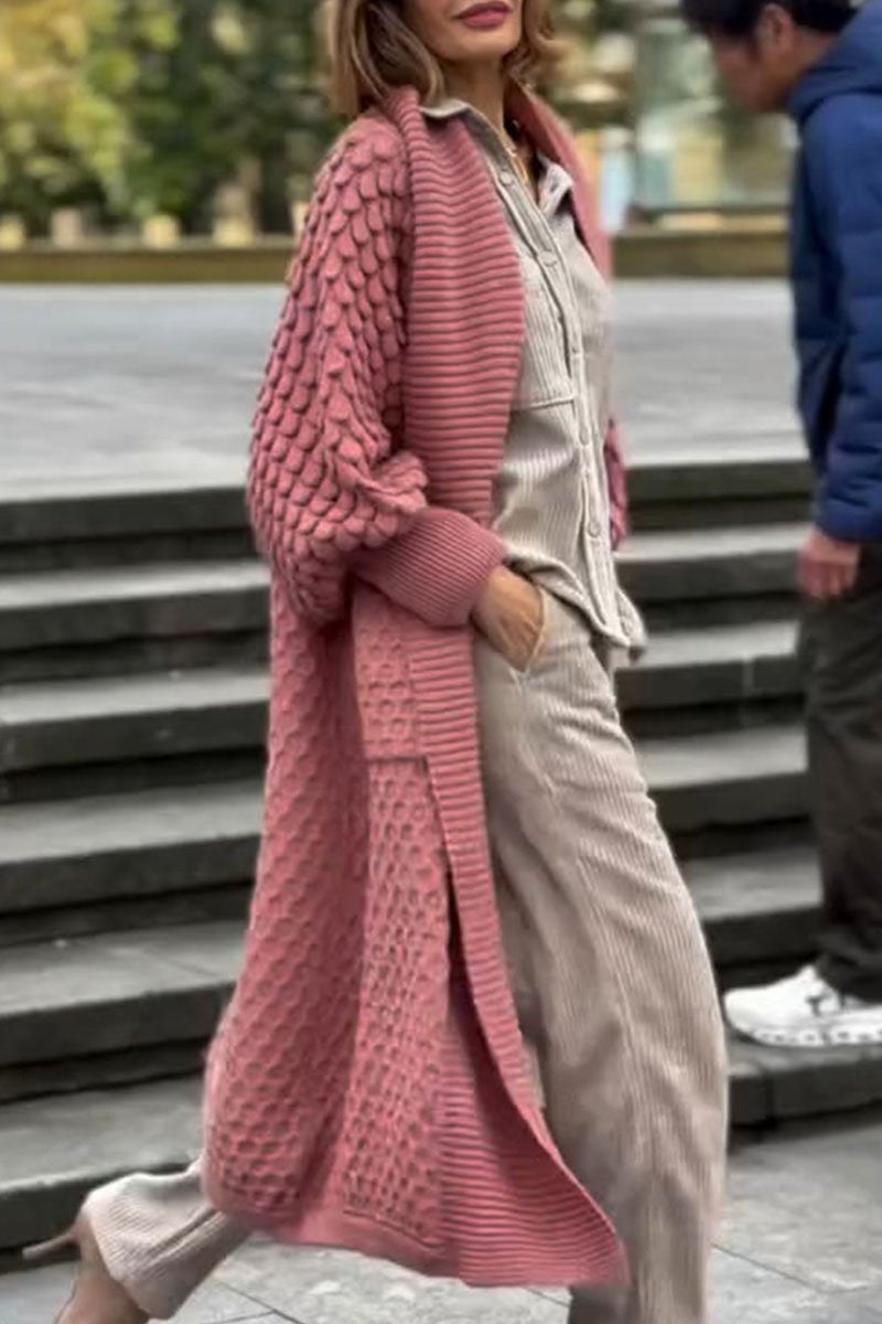 Women's Solid Color Knitted Long Cardigan