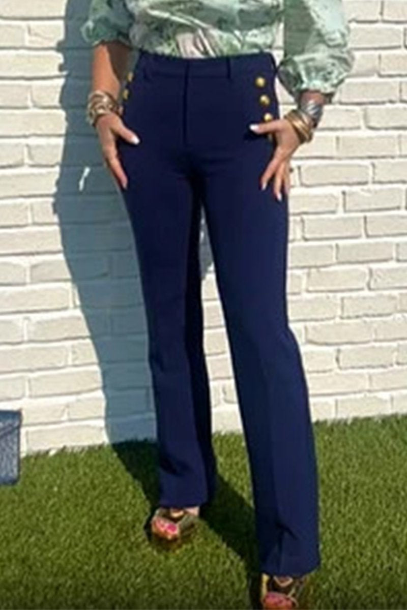 Women's Tummy-control Button Wide-leg Pants