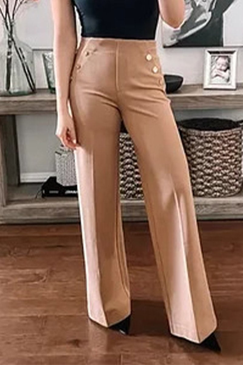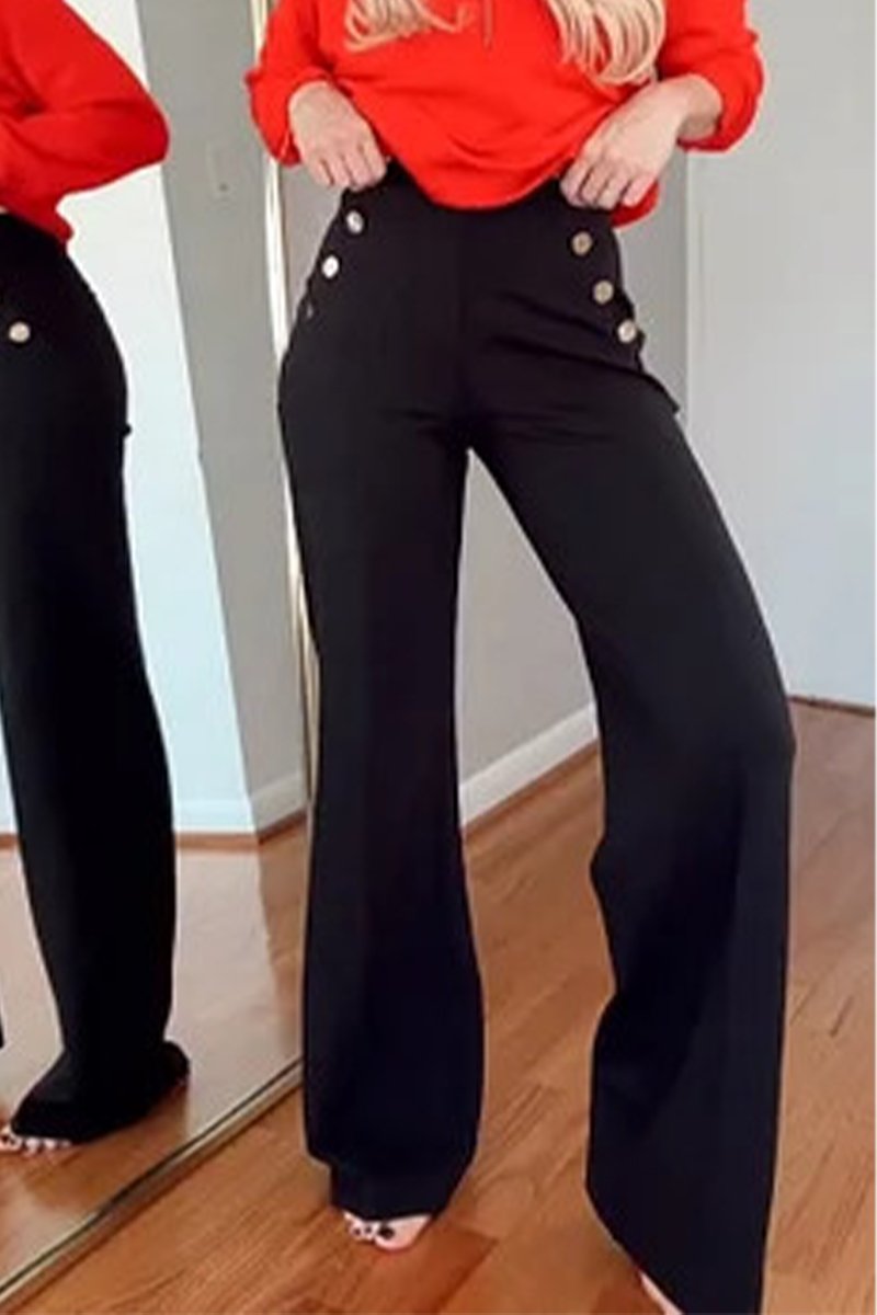 Women's Tummy-control Button Wide-leg Pants