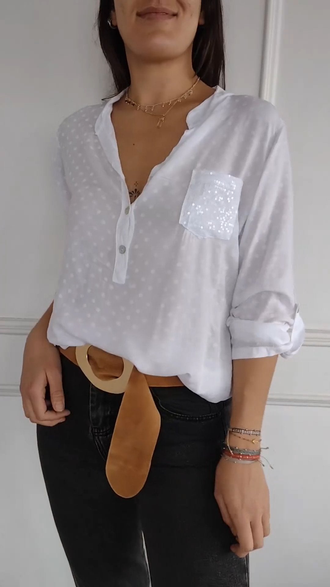 Women's V-neck Polka Dot Sequined Casual Shirt