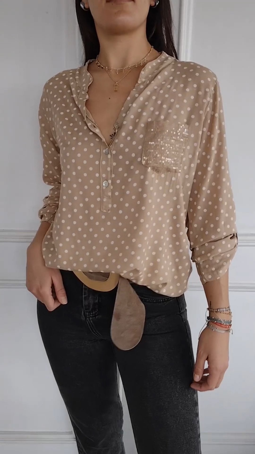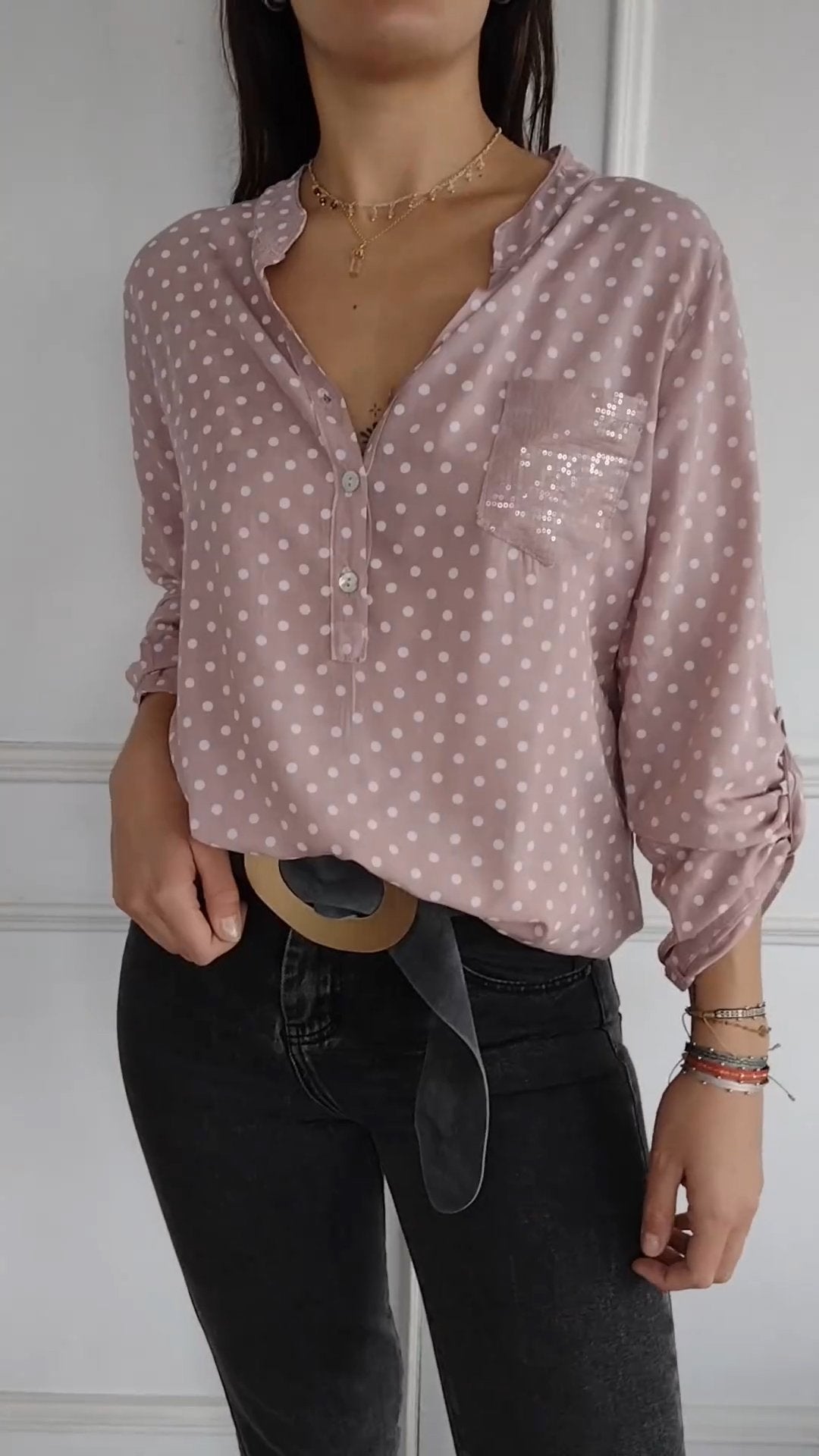 Women's V-neck Polka Dot Sequined Casual Shirt