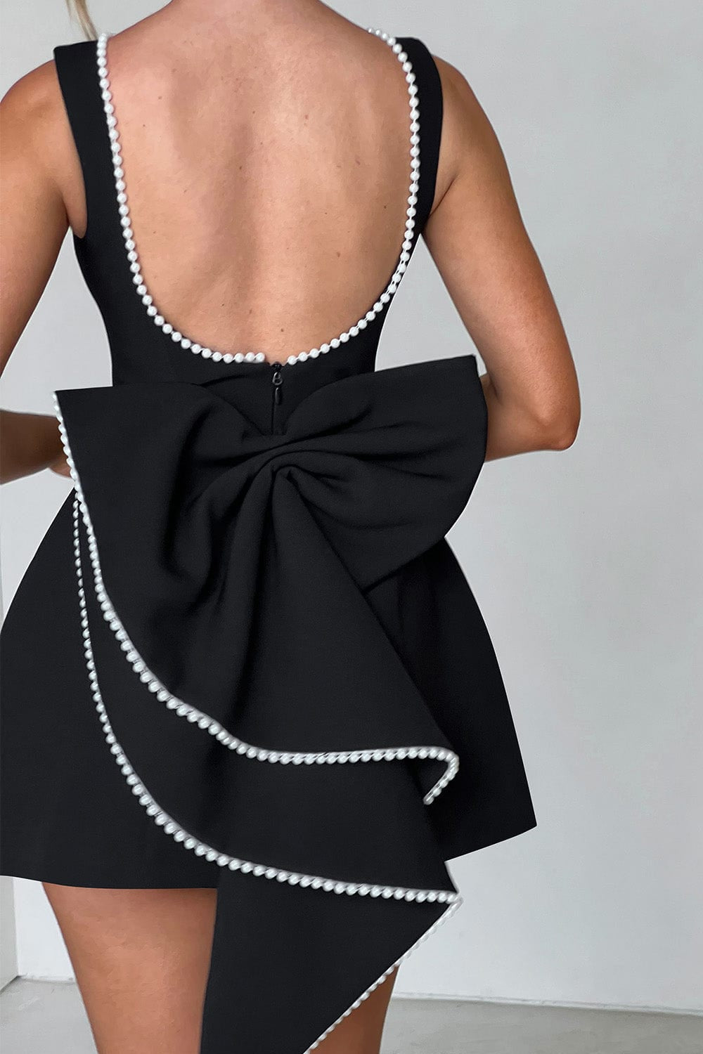 Open back with pearl detailing;