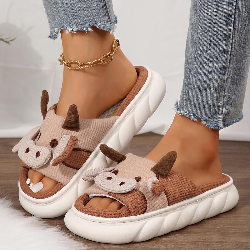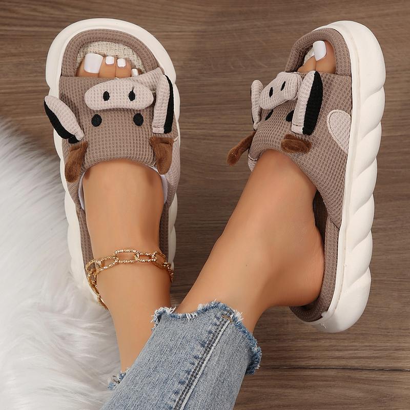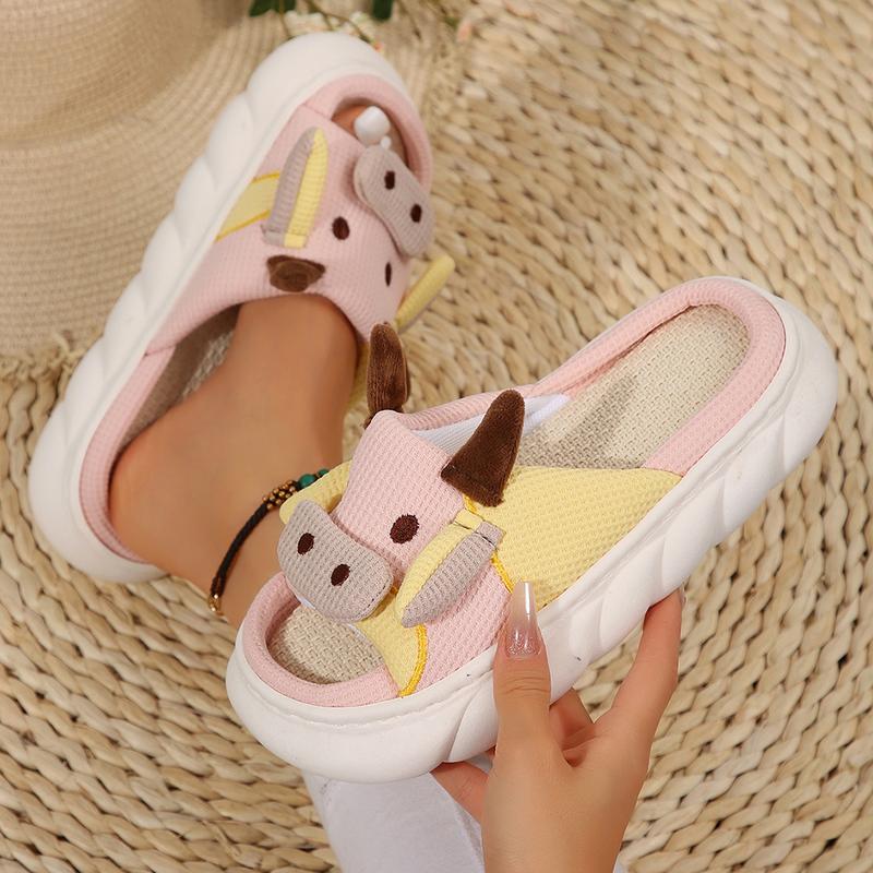 - Comfortable and stylish Women's Slippers made of soft Linen fabric.- Thick Bottom Soft Slippers with cushiony insole for maximum comfort.- Cute Animal Shape Cartoon Cow Slippers design that adds a touch of fun to your casual look.- Easy to wear and clean, making them perfect for indoor or outdoor use.- Perfect for women of all ages looking for a cozy and comfortable pair of slippers to relax at home.