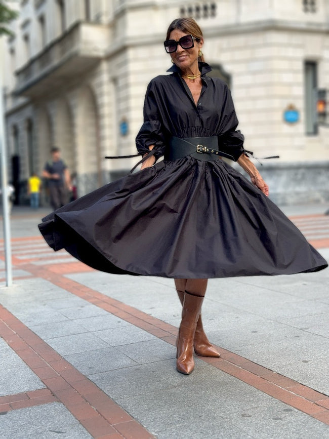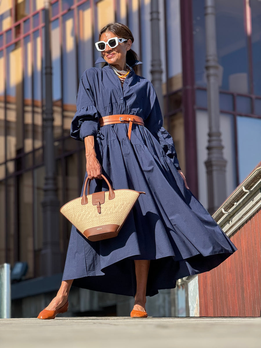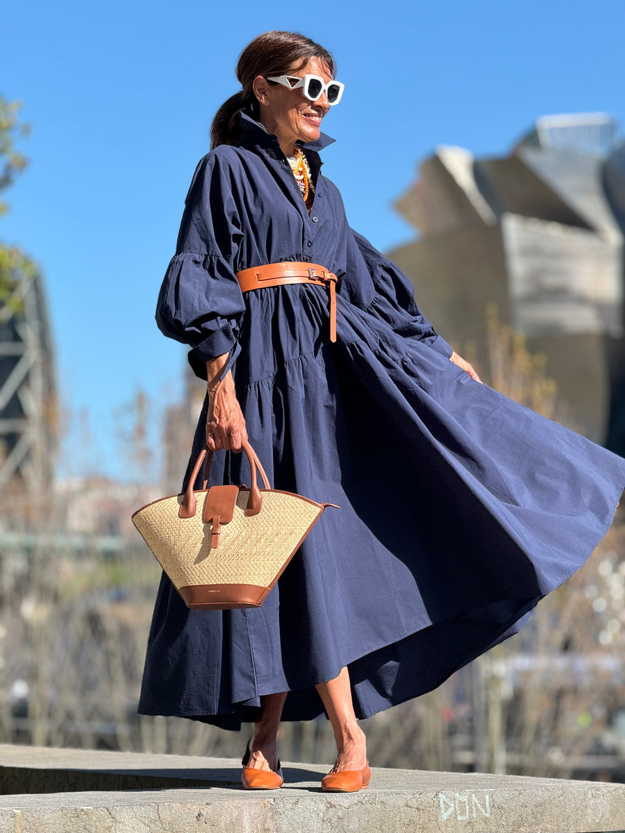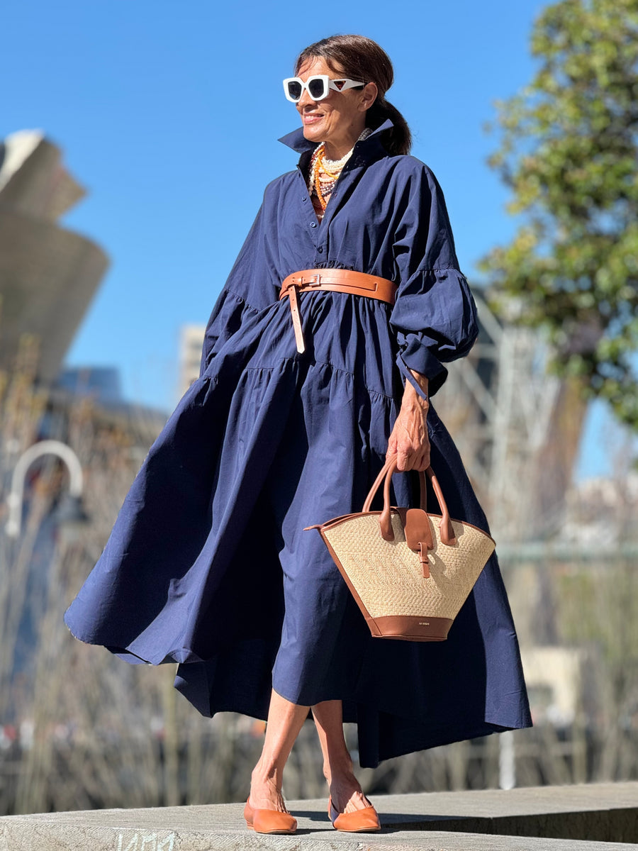 The Charlotte Navy Dress is a stylish and comfortable one size fits all dress from SIMON.Made from 100% Egyptian cotton, it is suitable till sizes 44 German, 16 UK, AND 12(L) USA. The length of the dress is 136 cm, but it can be shortened if needed.