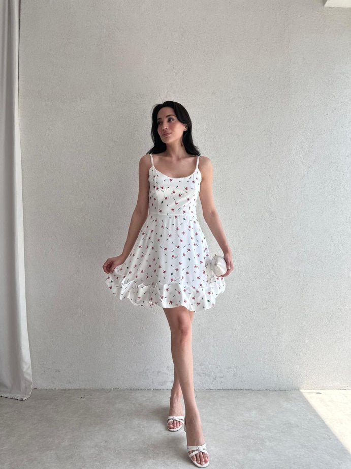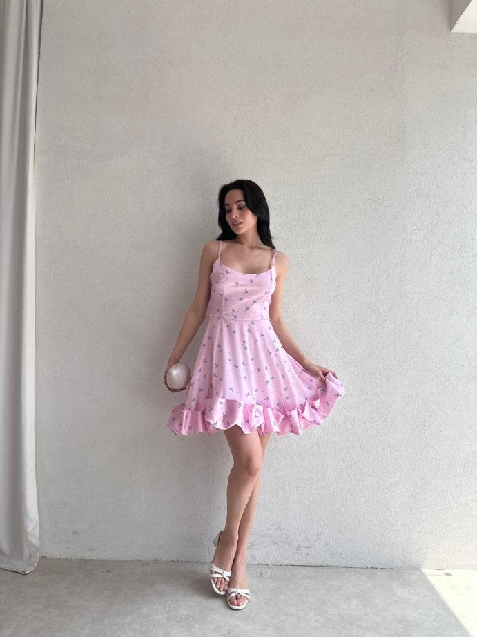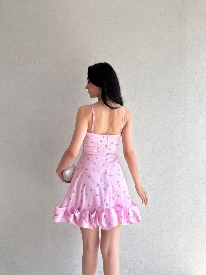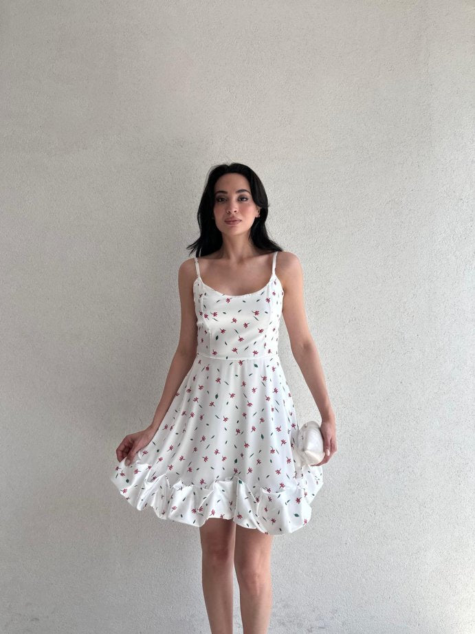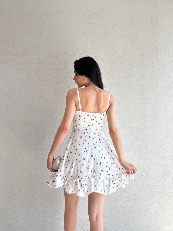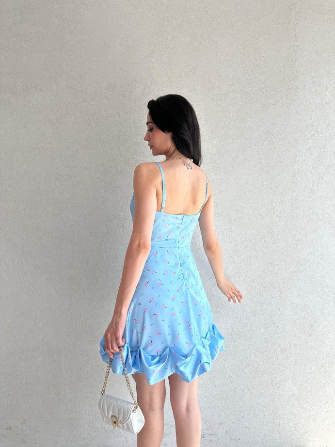 Exquisite Pleated Floral Dress with suspender hem and full body shaping design.