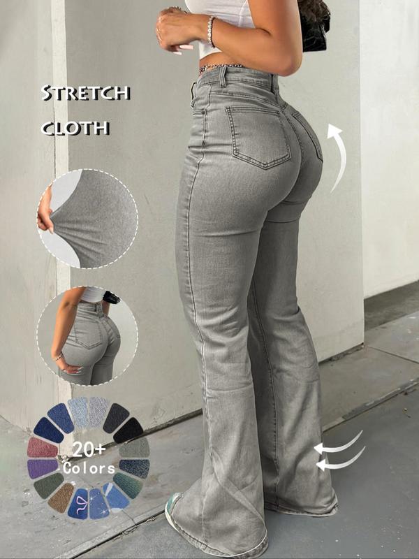 Women's High Waist Flare Leg Jeans, Casual Button Fly Pocket Design Bell Bottom Denim, Women's Bottoms for Daily Wear, Kardashian Style, 000 Jeans, Fashionable And Versatile Women's Jeans, Suitable For Spring, Summer, Autumn And Winter, Tchic