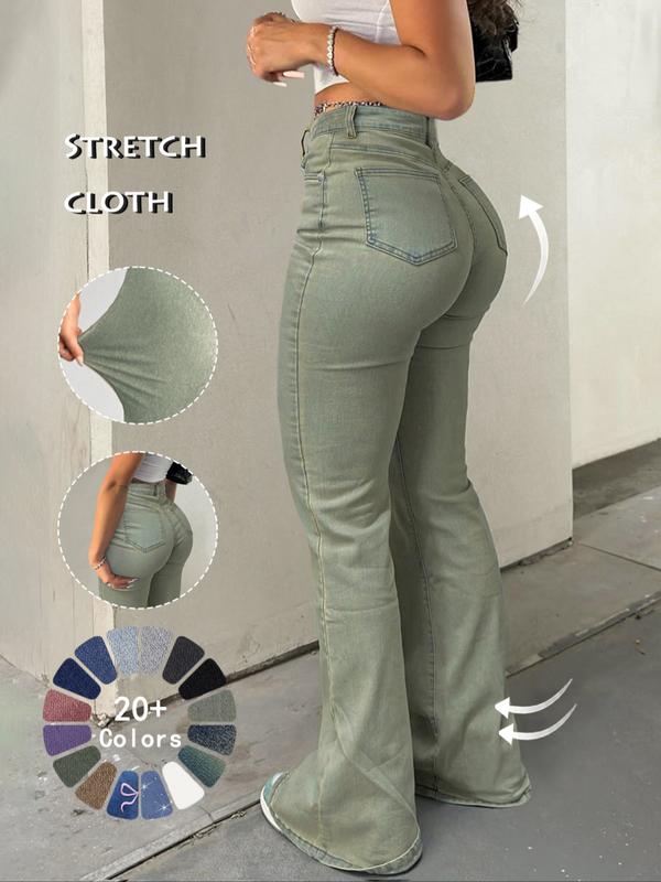 • Women's High Waist Flare Leg Jeans, Casual Button Fly Pocket Design Bell Bottom Denim, Women's Bottoms for Daily Wear, Kardashian Style, 000 Jeans, Fashionable And Versatile Women's Jeans, Suitable For Spring, Summer, Autumn And Winter, Tchic