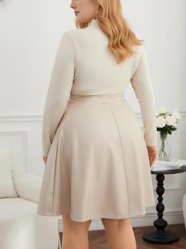 • Plus Size A-Line Dress, Mock Neck Long Sleeve Woven Fabric, Fall & Winter Fashion, Elegant Party Style, Comfortable Slim Fit Design