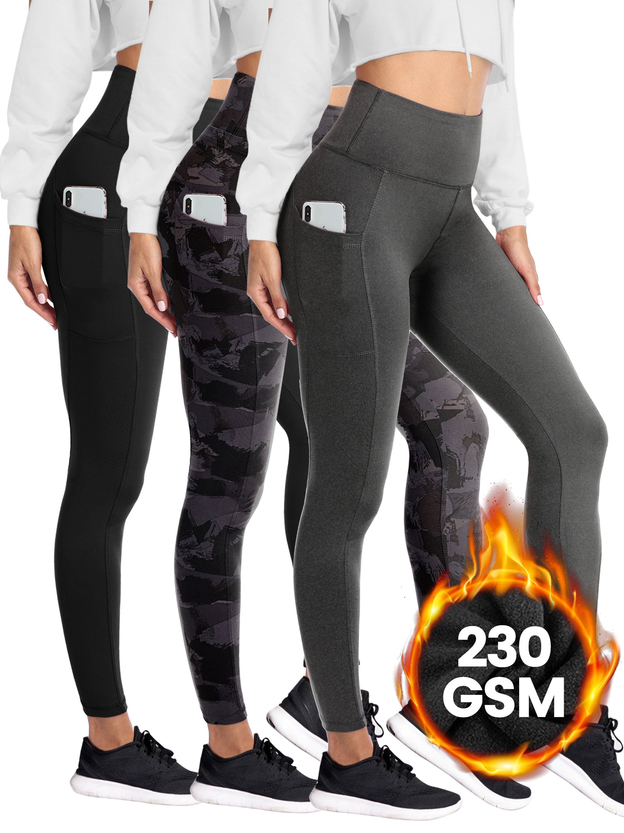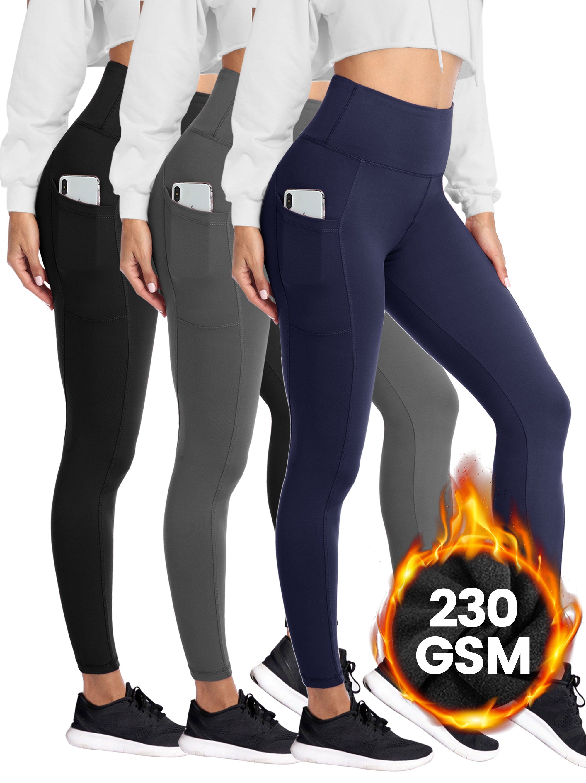 • SHOWITTY 1/3 Pack Fleece Lined Leggings with Pockets for Women - Plus Size High Waist Tummy Control Soft Women's Yoga Pants for Workout Running