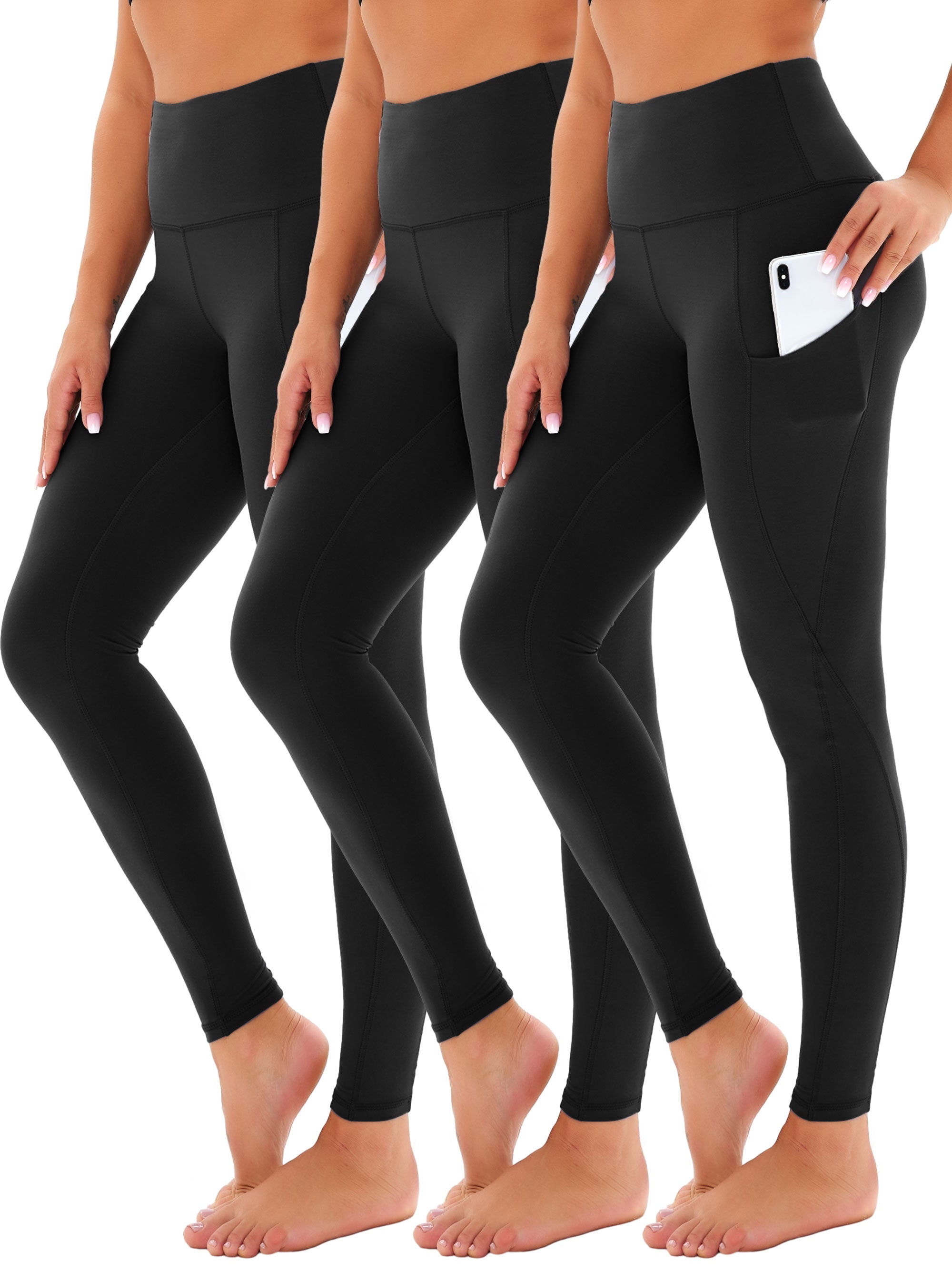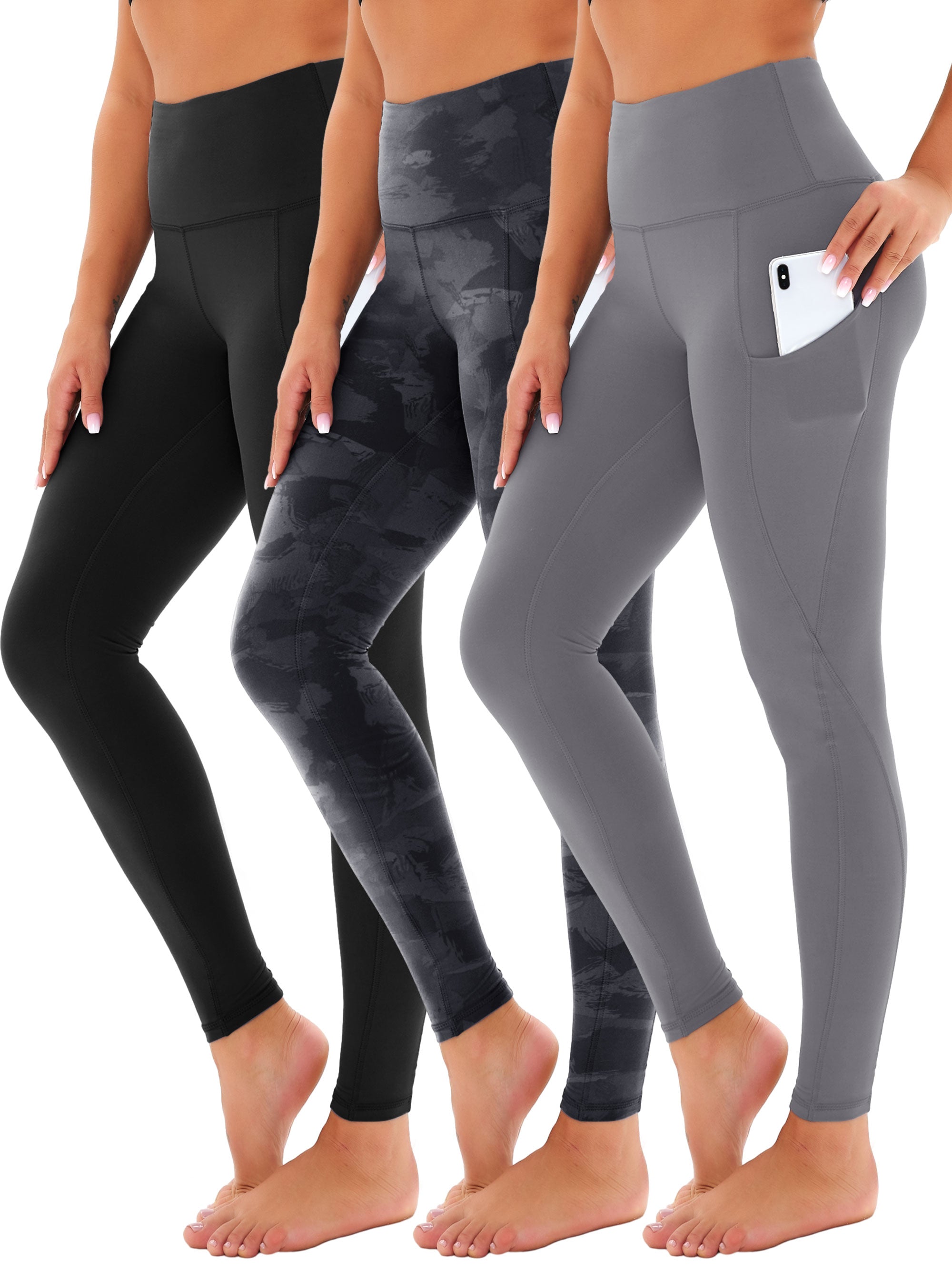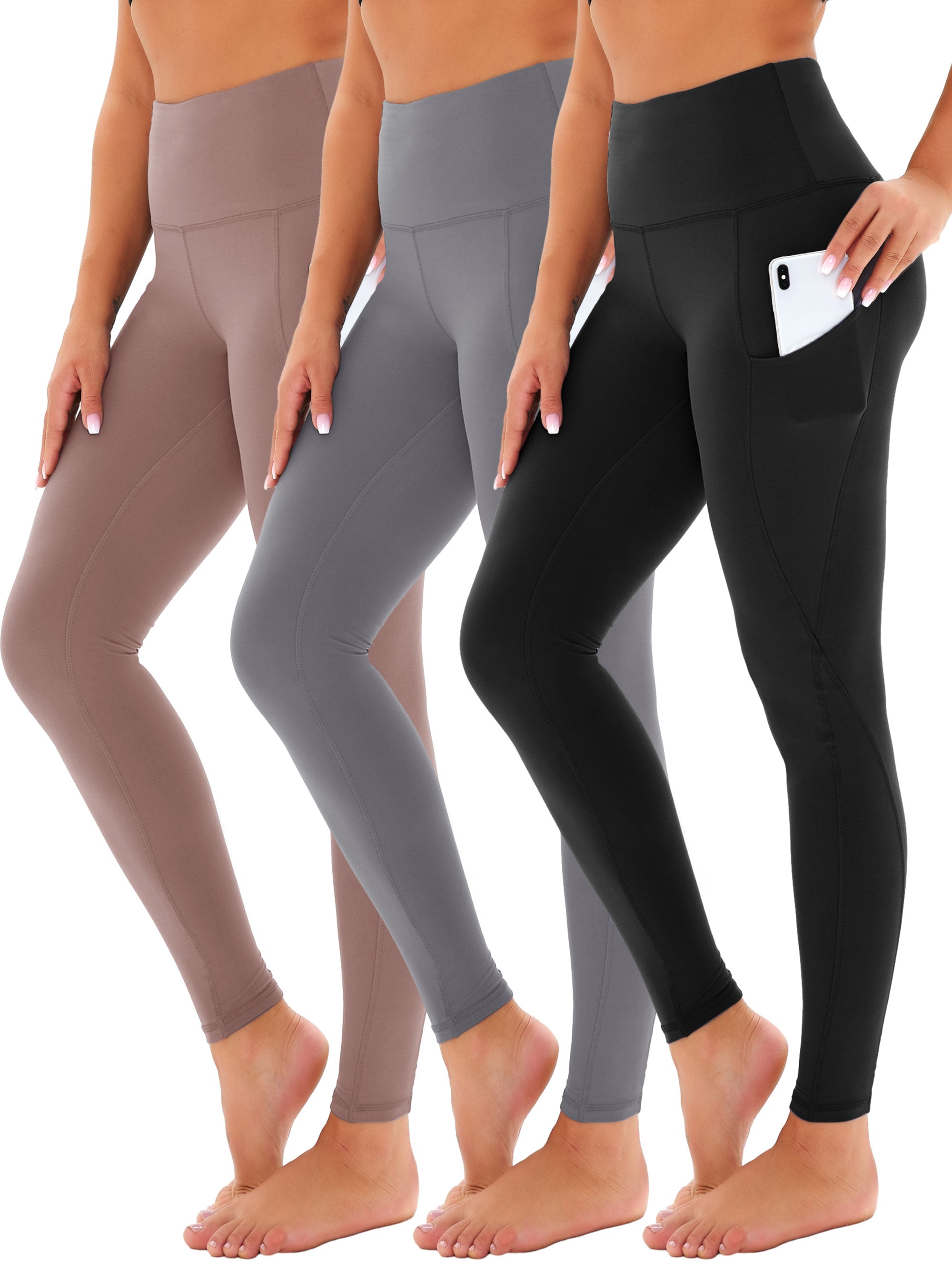 SHOWITTY 3 Pack Leggings for Women with Pockets - Plus Size High Waist Women's Workout Running Yoga Pants