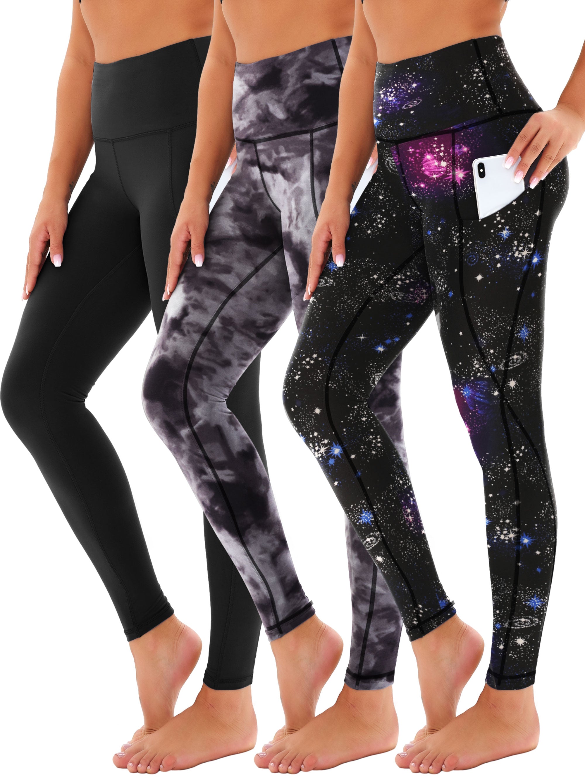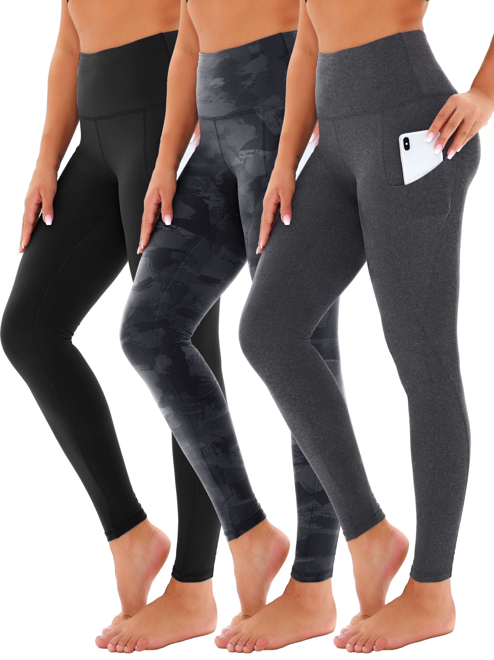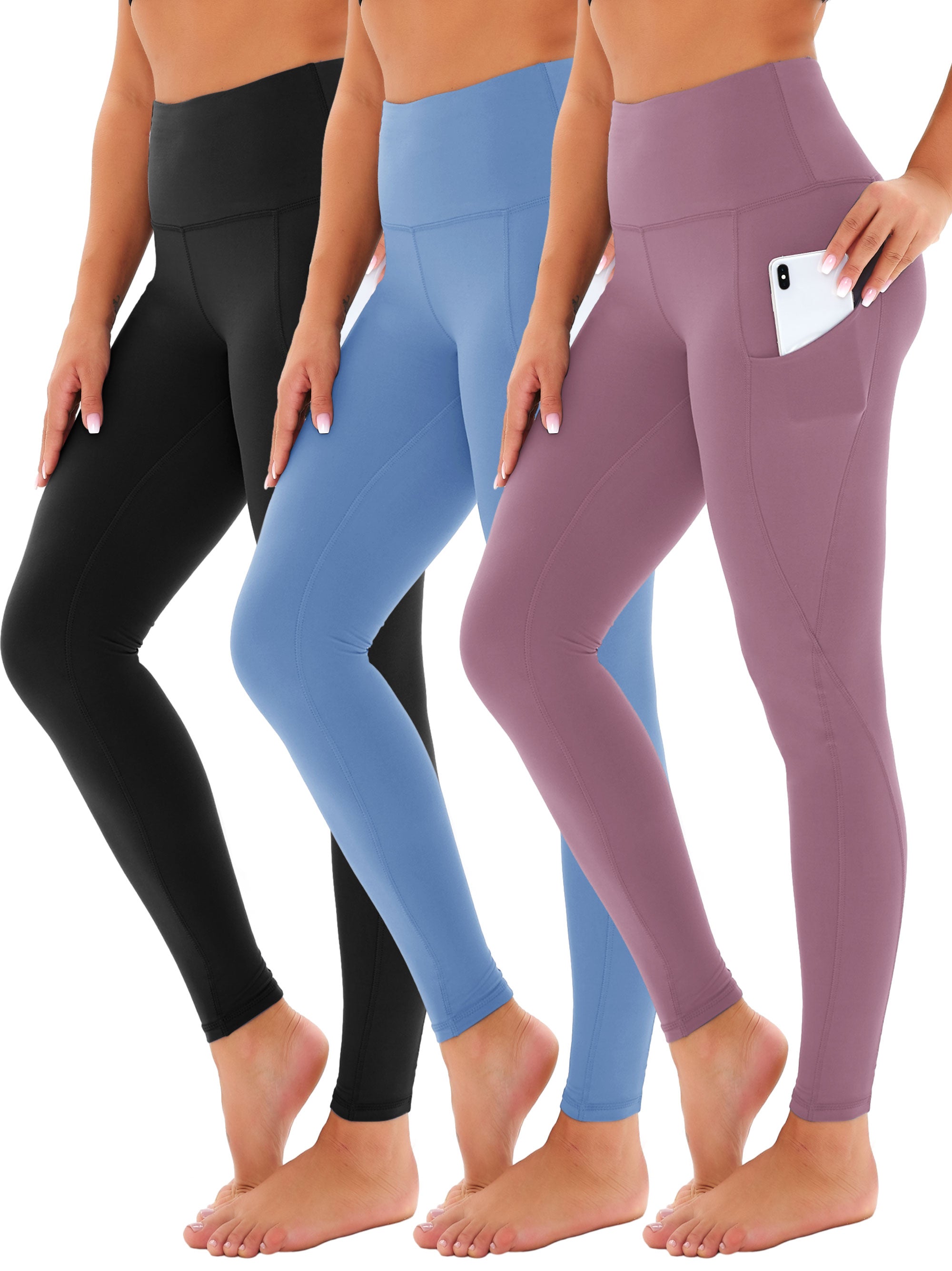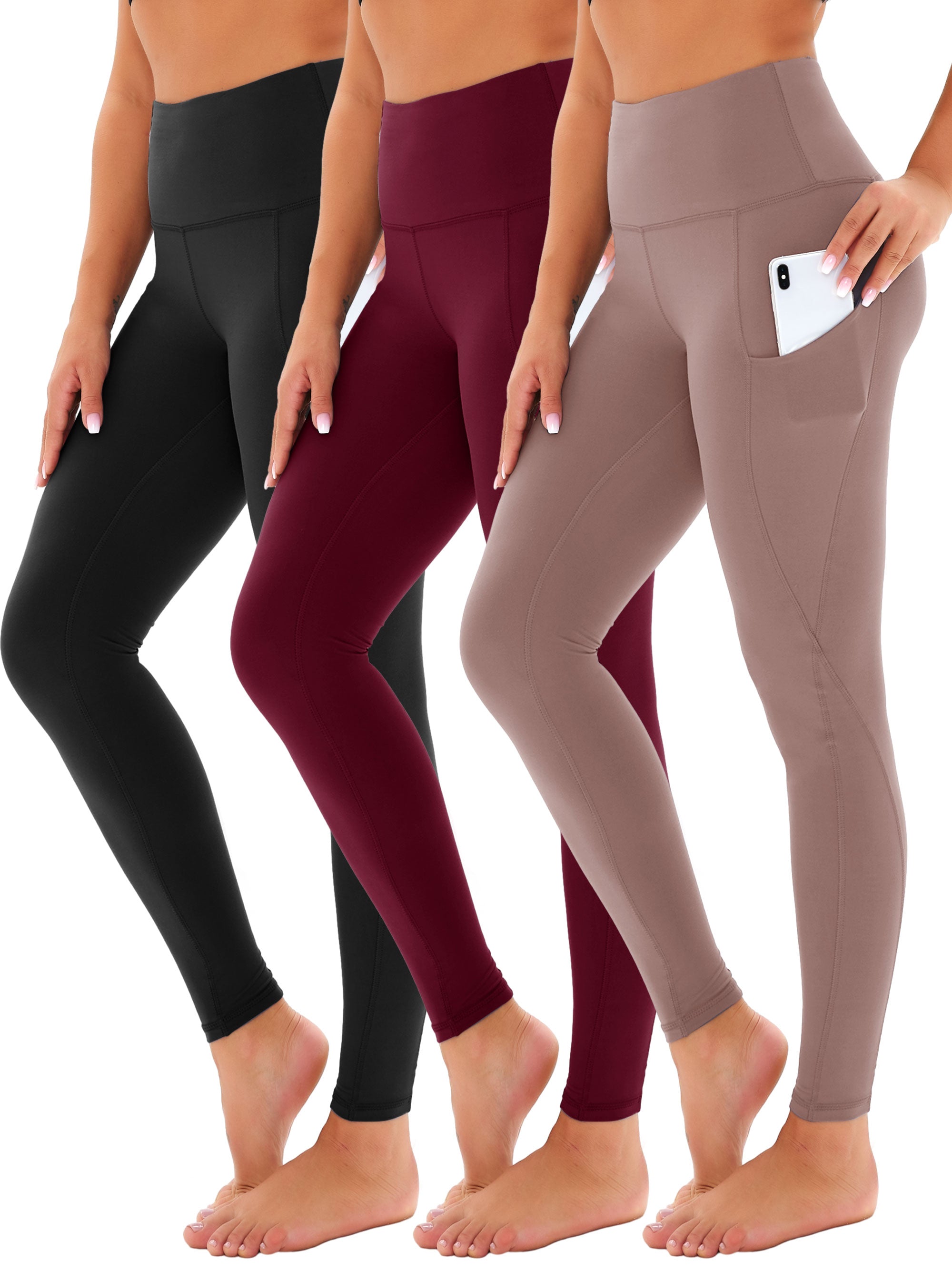 SHOWITTY 3 Pack Leggings for Women with Pockets - Plus Size High Waist Women's Workout Running Yoga Pants