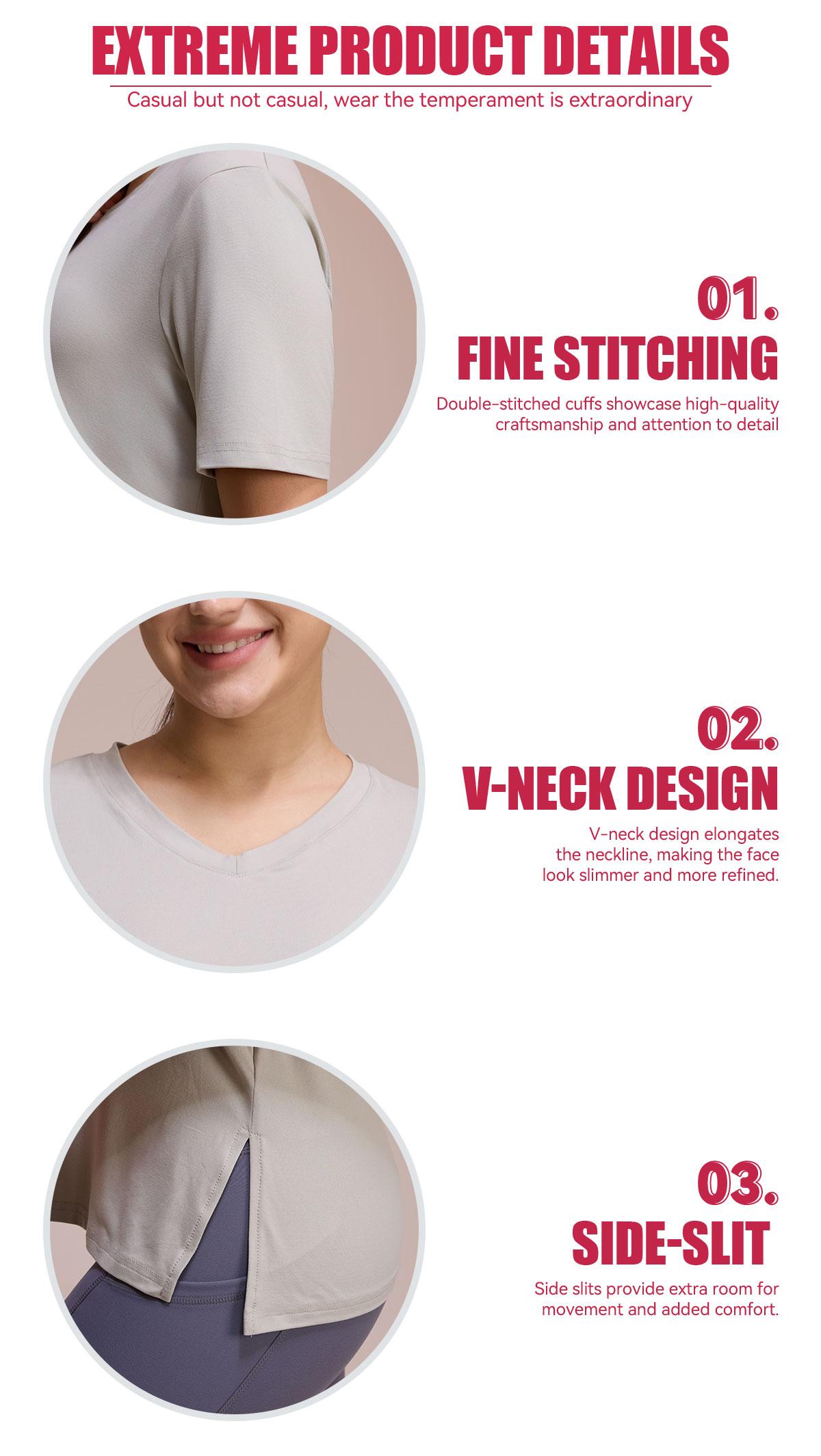 Versatile V-Neck Design - Adds a touch of elegance while remaining easy to style with shorts, leggings, or wide-leg pants.