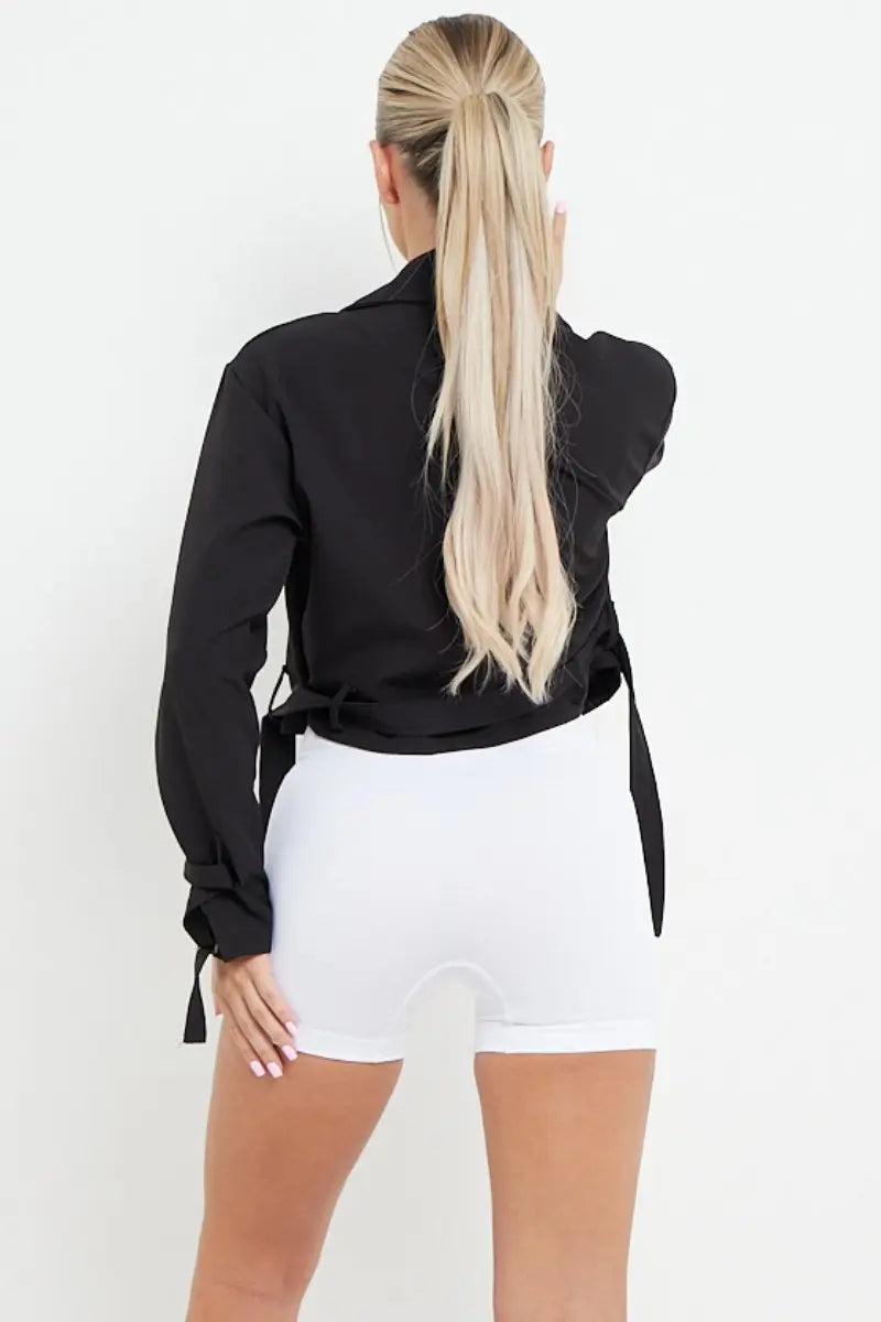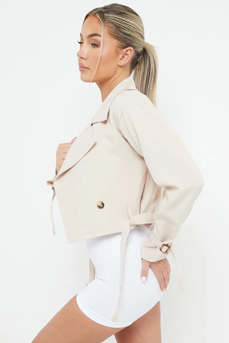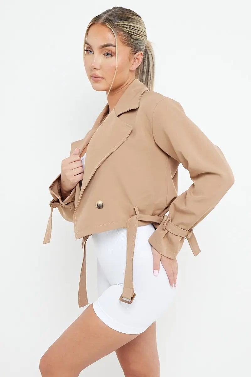 Trendy Notch Lapel Belt Decor Cropped Jacket
