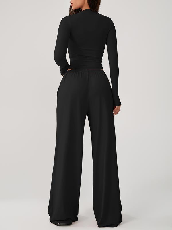 • Two Piece Set Women's Home Clothing Set Soft and Skin Friendly Long Sleeved T-shirt Loose and Wide Leg Pants with Adjustable Drawstring Daily Leisure Travel Airport Travel Home Wear Women's Pajamas Set, Womenswear