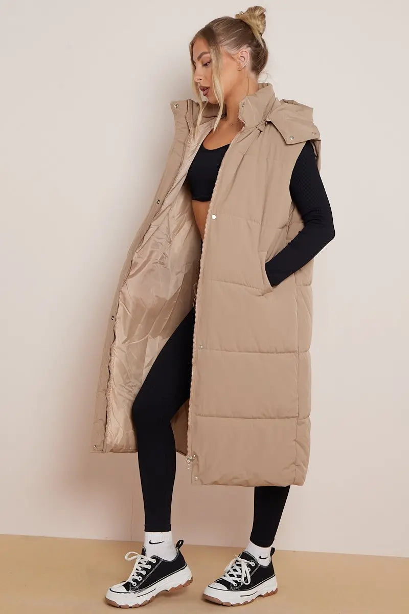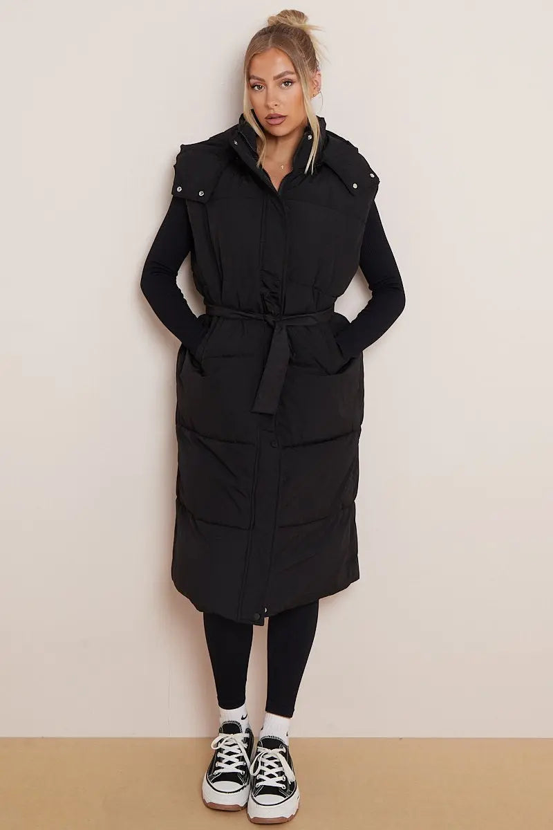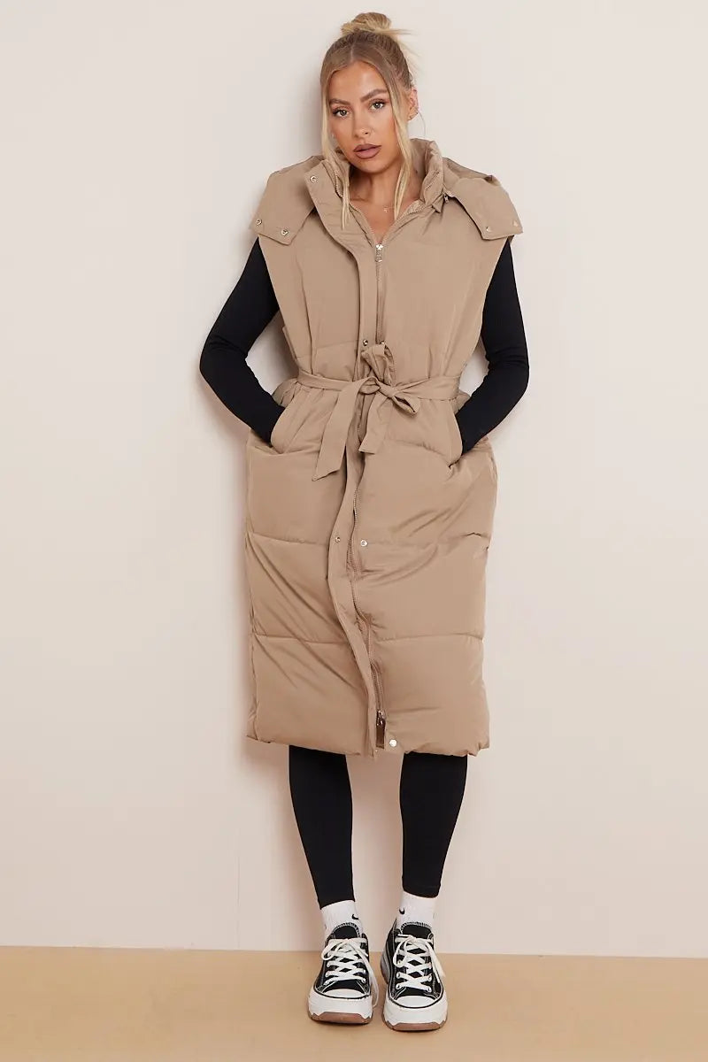 Versatile Waist Tie Hooded Zip-Up Thermal Gilet