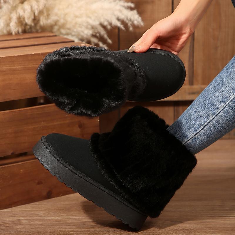 "Womens snow boots made with fluffy faux lining for ultimate warmth and comfort during cold winter days.Short design perfect for everyday wear and casual errands, but with a platform for added style.Durable materials and slip-resistant sole helps you trek through snow and ice without worry.Available in multiple colors to match any outfit or personal style.Great gift idea for any woman in need of a reliable and stylish pair of snow boots."
