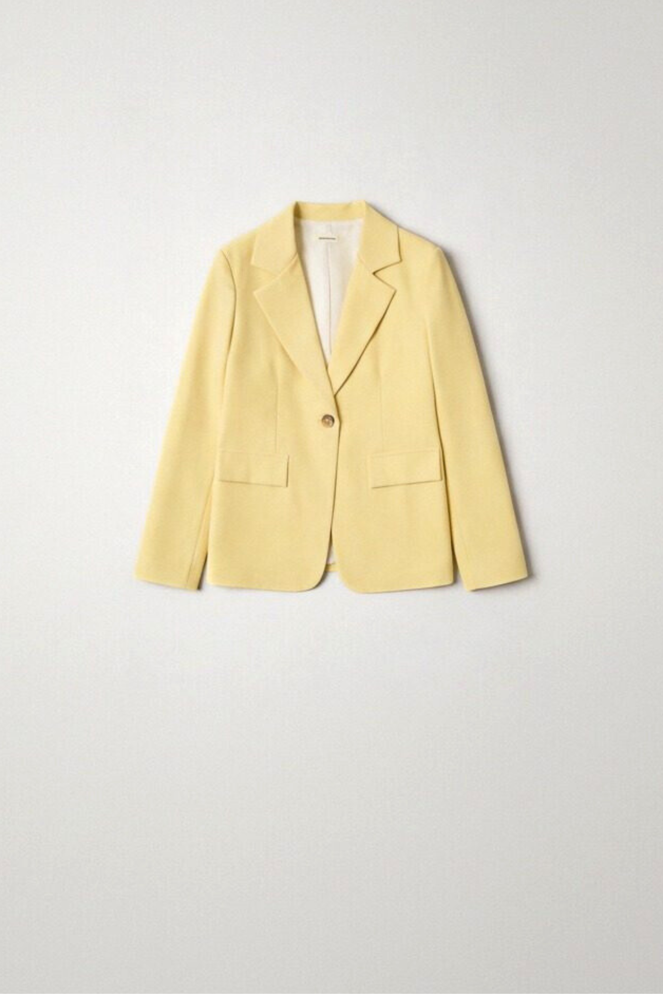 Cuello con solapas. Manga larga. Diseño recto. Cierre con botón. Bolsillos falsos. Talla modelo: S. Altura modelo: 1,80 m.