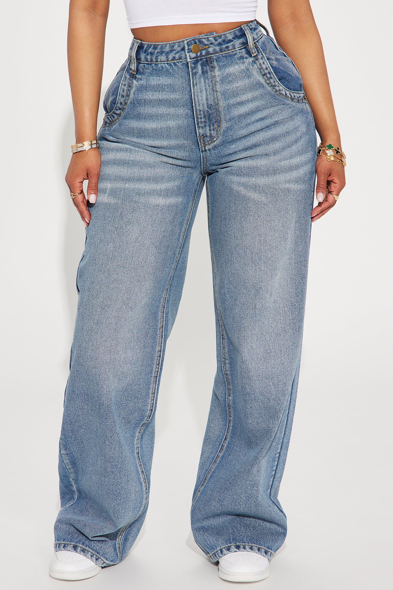 Available In Light Wash And Vintage Wash.Wide Leg JeanDrop Waist11" Rise32.5" InseamNon StretchDisclaimer: Due To The Specialized Wash Process, Each Garment Is Unique.90% Cotton 10% PolyesterImported