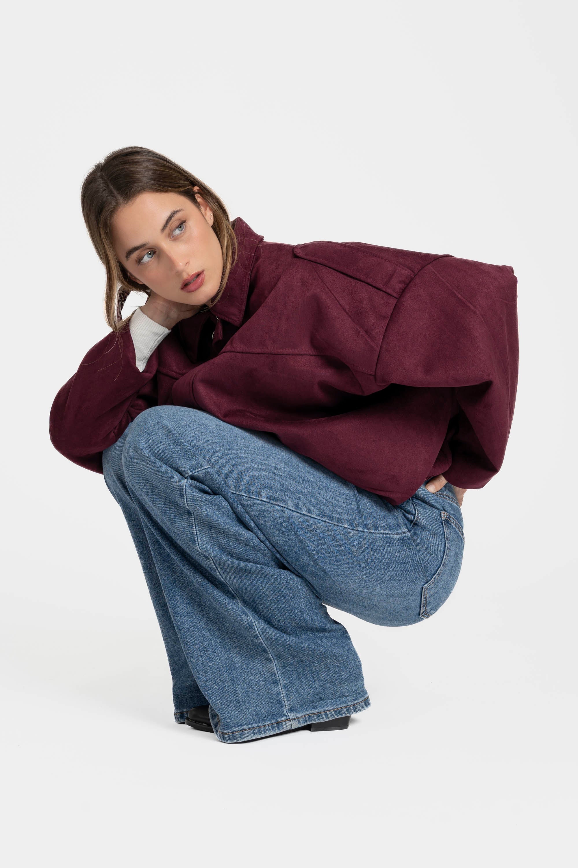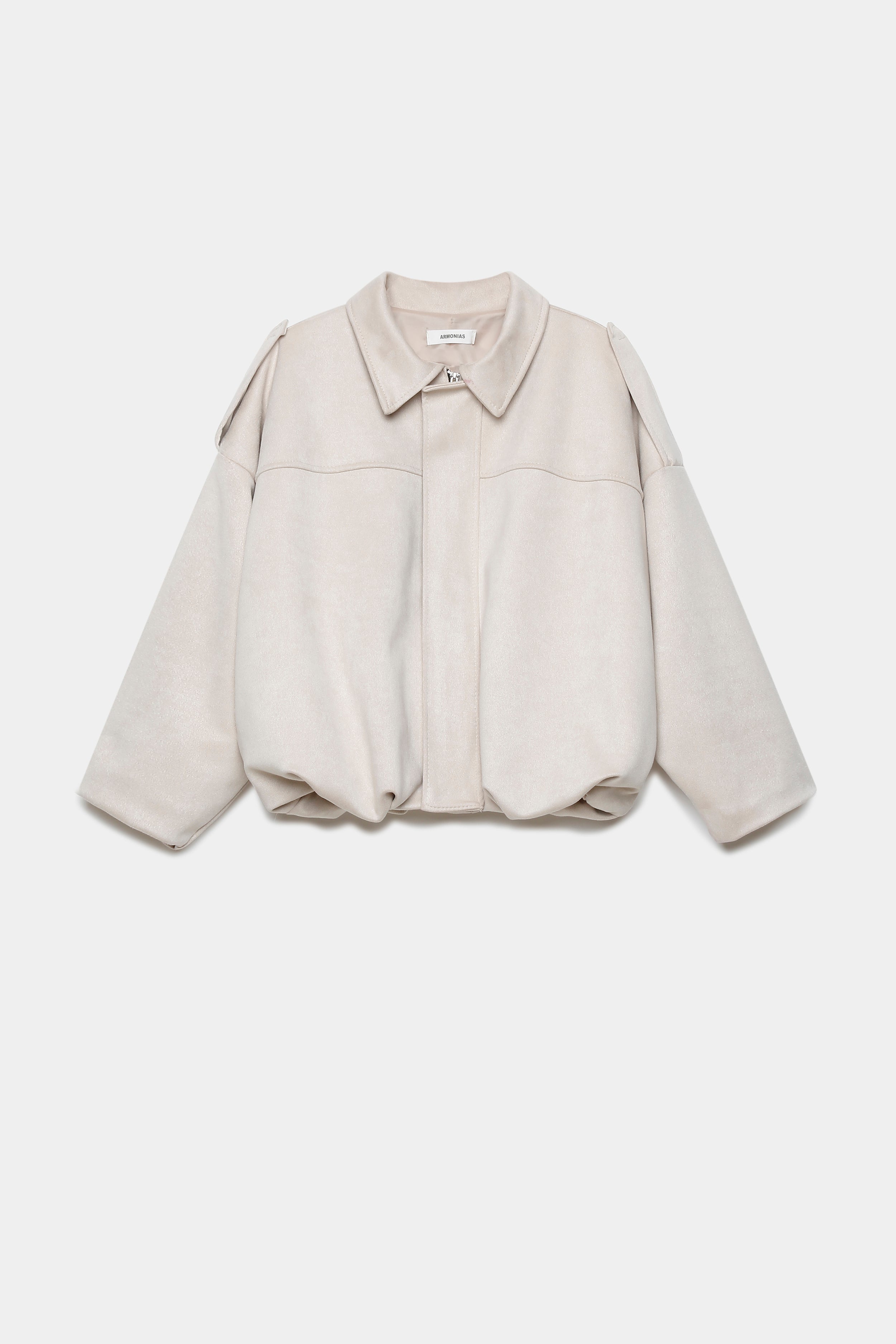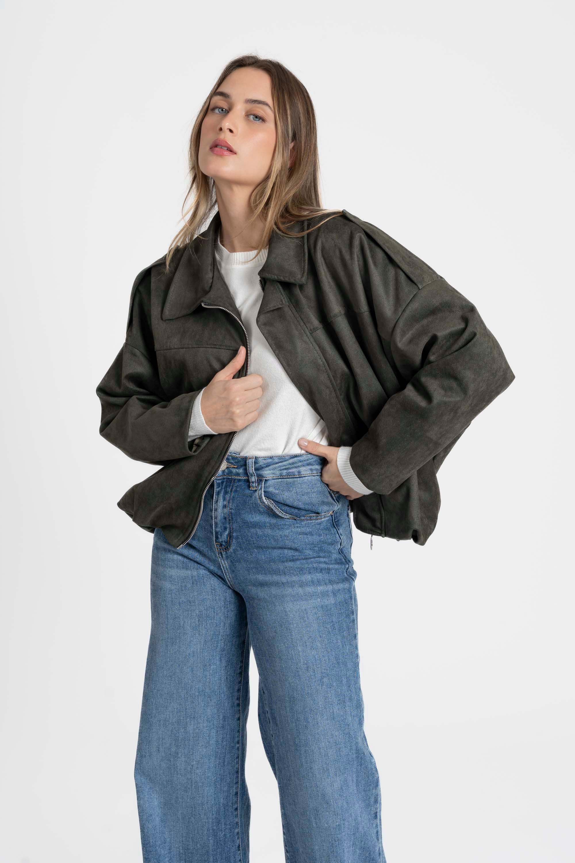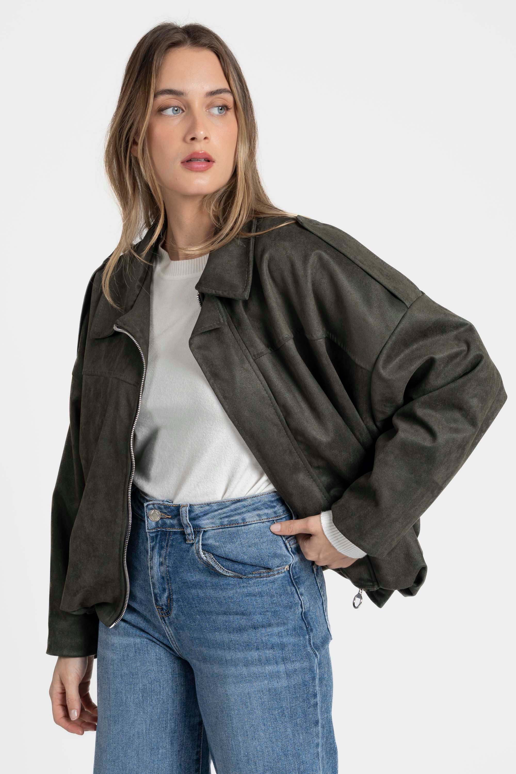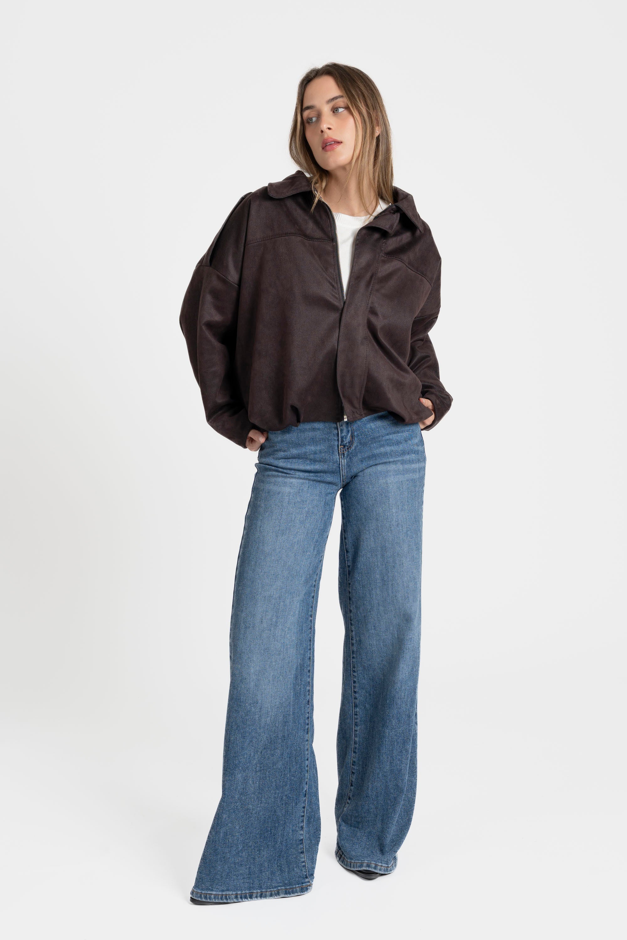 Tejido efecto ante. Cuello solapa. Manga larga. Cierre cremallera.