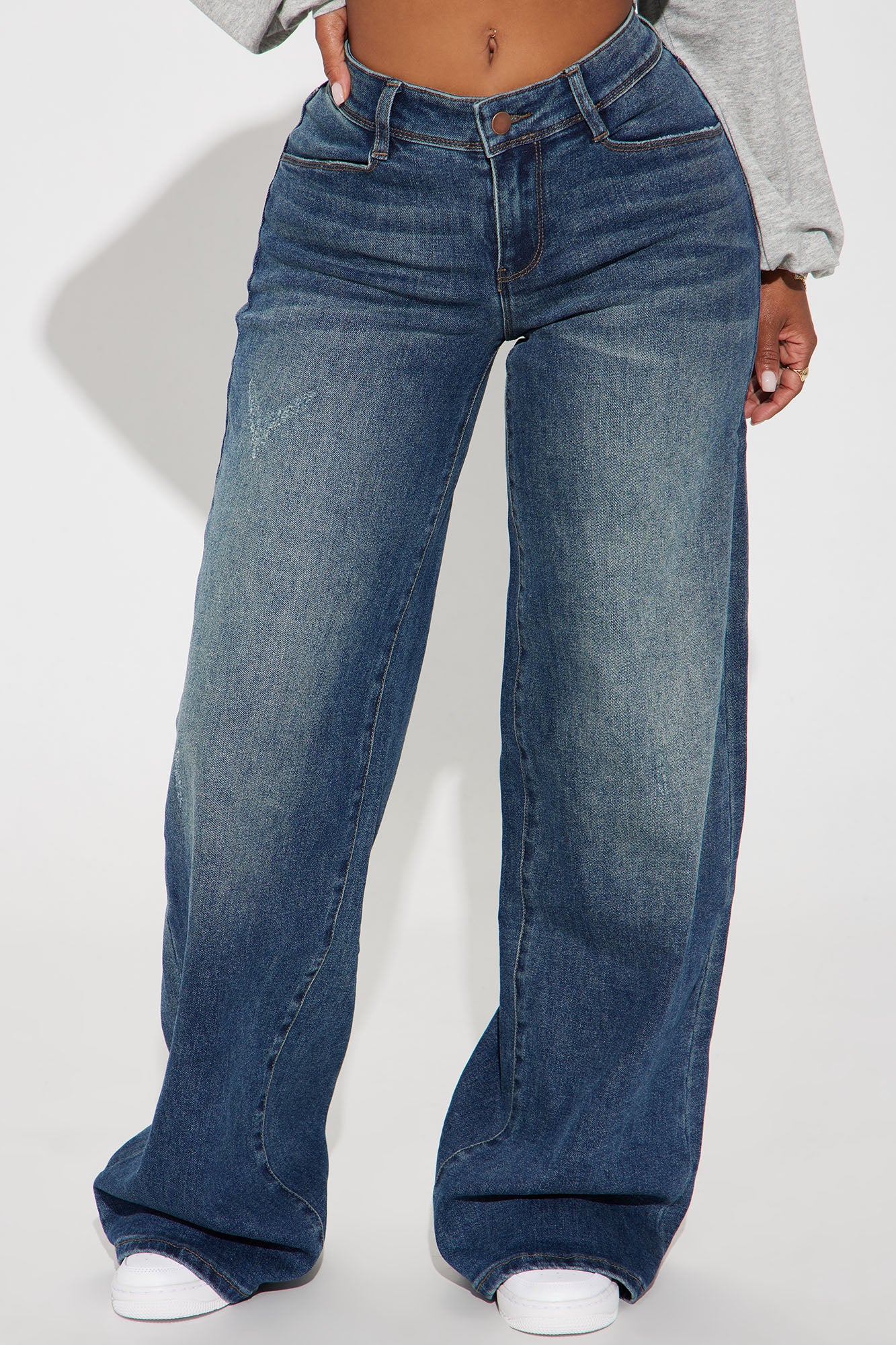 Available In Black Wash And Medium Wash.Wide Leg Jean4 Pockets8.5" Mid Rise34" InseamLow StretchDisclaimer: Due To The Specialized Wash Process, Each Garment Is Unique.54% Cotton 26% Polyester 18% Rayon 2% SpandexImported