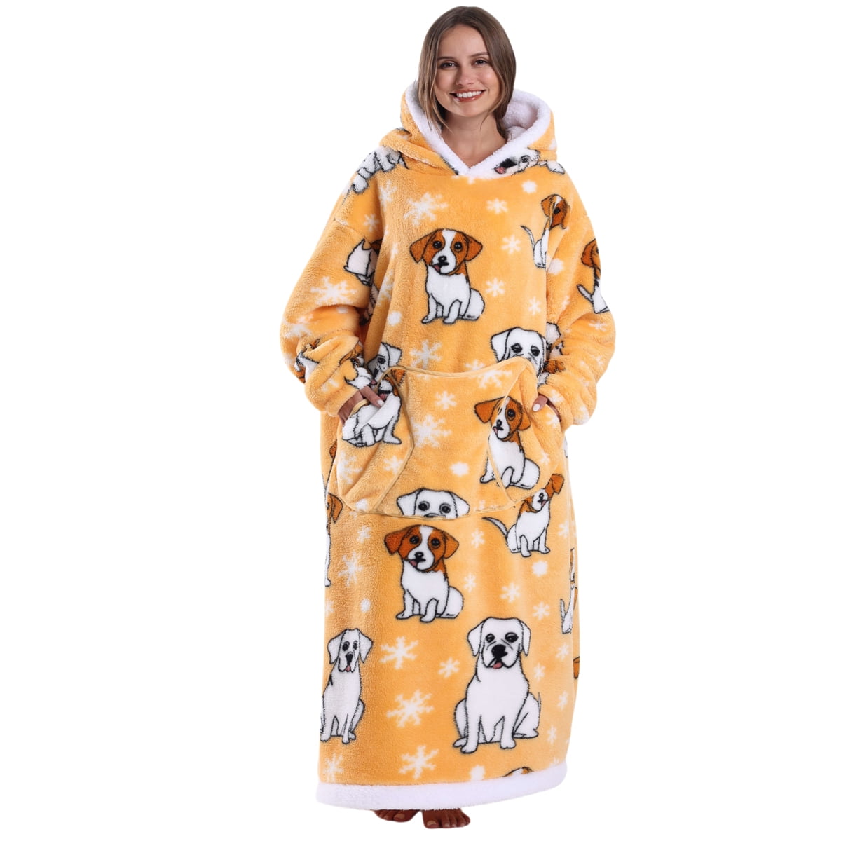 - Comfortable Material: Blanket Hoodie made of high quality Flannel. The practical hood design is large and practical, and it will keep warm and comfortable no matter how low the temperature is.super soft and warm. Wearing it freely, you can wear it for housework and move freely. keeping you warm and comfortable while watching TV, lounging on the sofa/bed, playing games, reading a book, or working at home. It is the best choice.