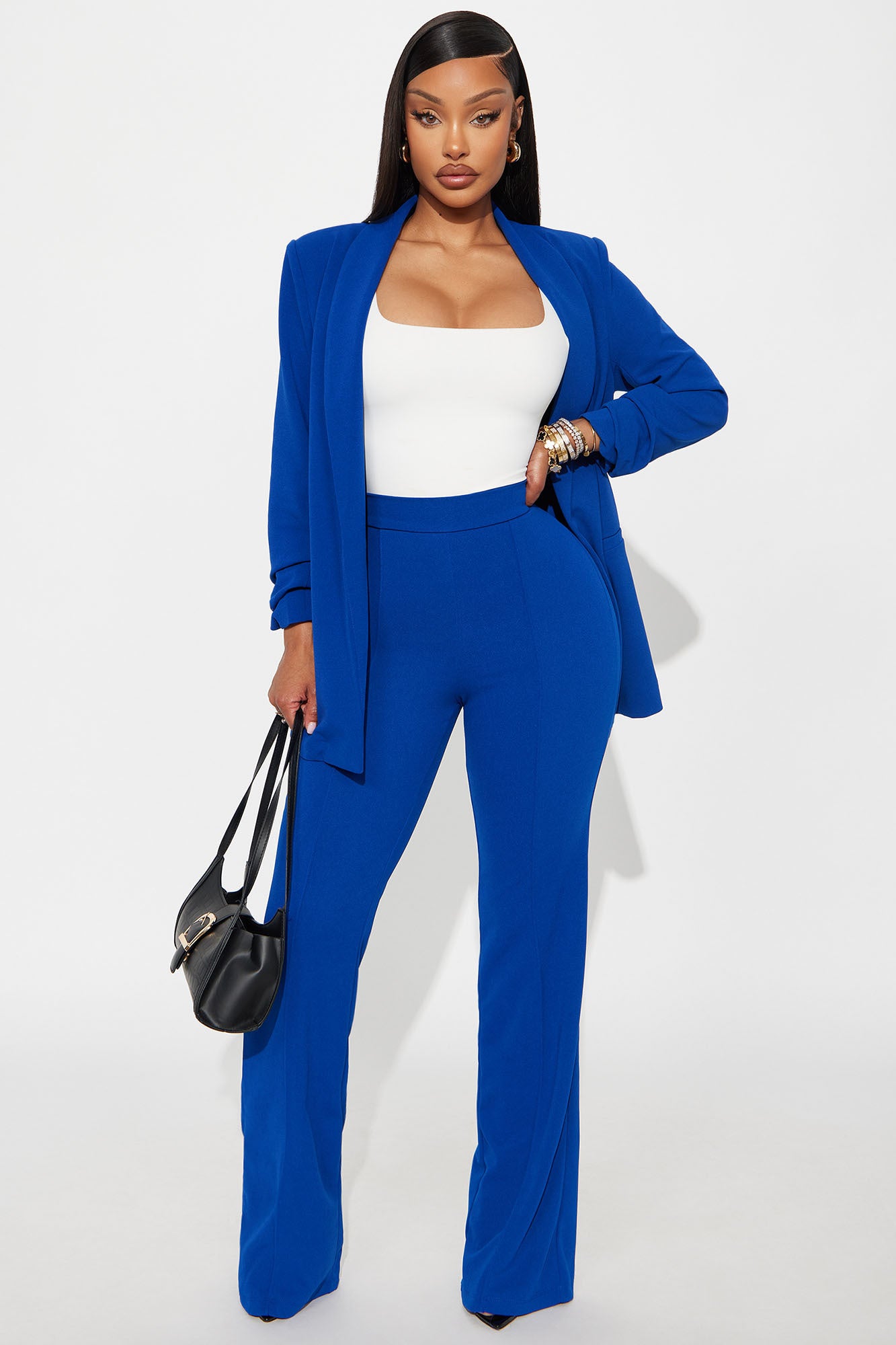 Available In Black, Charcoal, Chocolate, Navy, Red, Royal, Taupe And White.Available in Regular, Tall, and Petite InseamsPetite: 32" InseamHigh RisePintuck FrontHidden Back ZipperStretch95% Polyester 5% SpandexImported