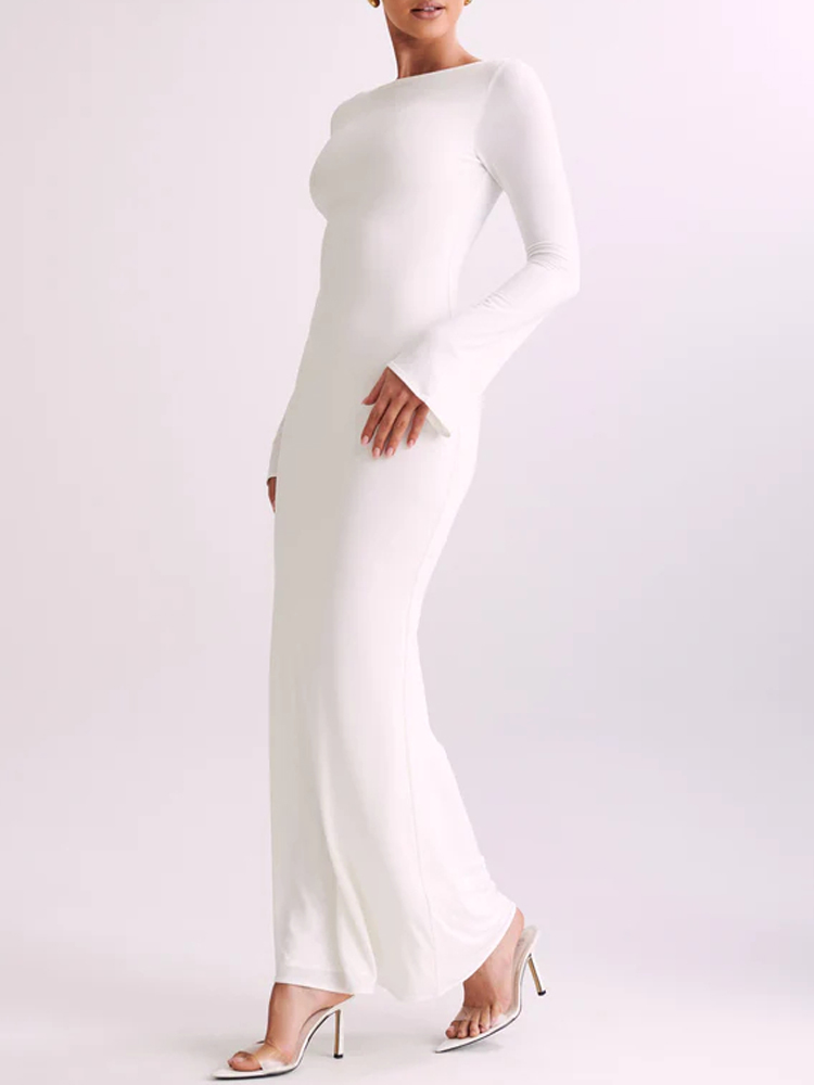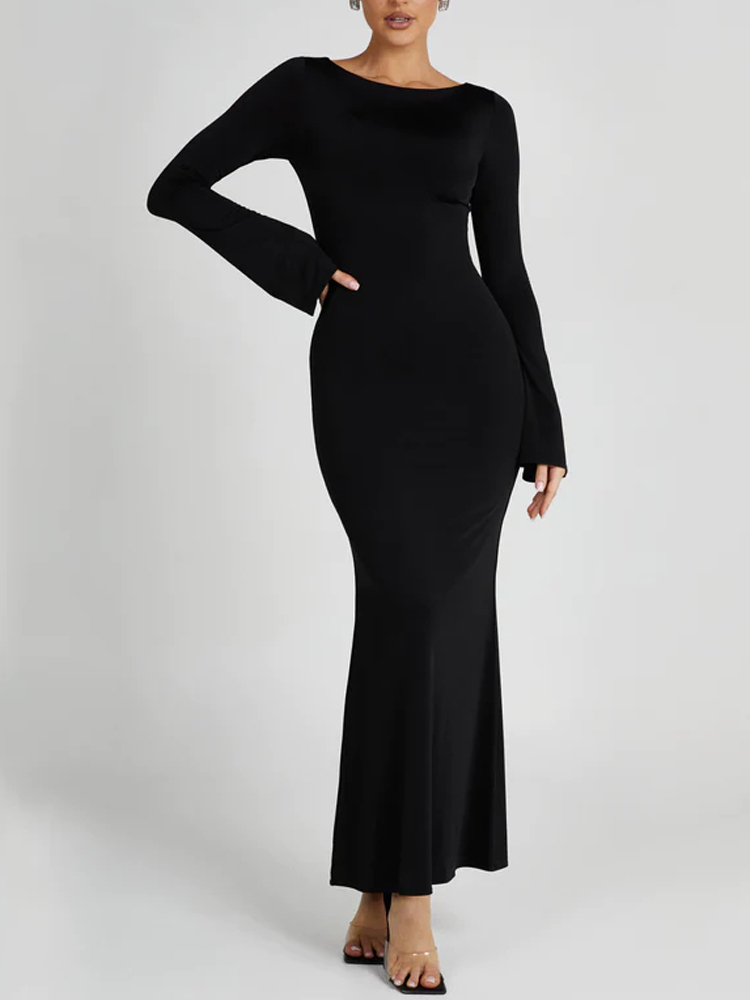 This maxi dress features a flattering round neckline and elegant flared sleeves, perfect for any party occasion. Its mermaid silhouette adds a touch of sophistication, while the soft fabric ensures comfort and style all night long. Style it with statement accessories for a polished look.