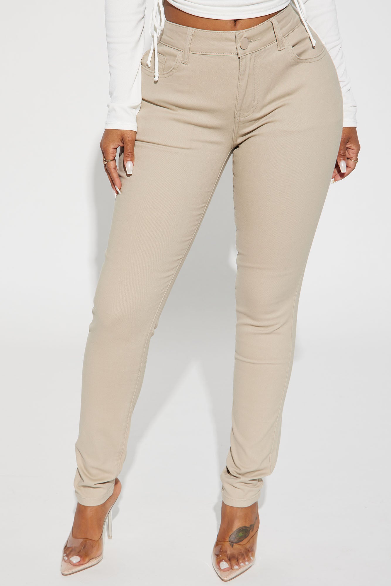 Available In Black, Burgundy, Coco, Khaki, Military Green, Navy, Red And Rust.Skinny Leg PantMid Rise5 Pocket DesignStretch MaterialDisclaimer: Due To The Specialized Wash Process, Each garment Is Unique98% Cotton 2% SpandexImported