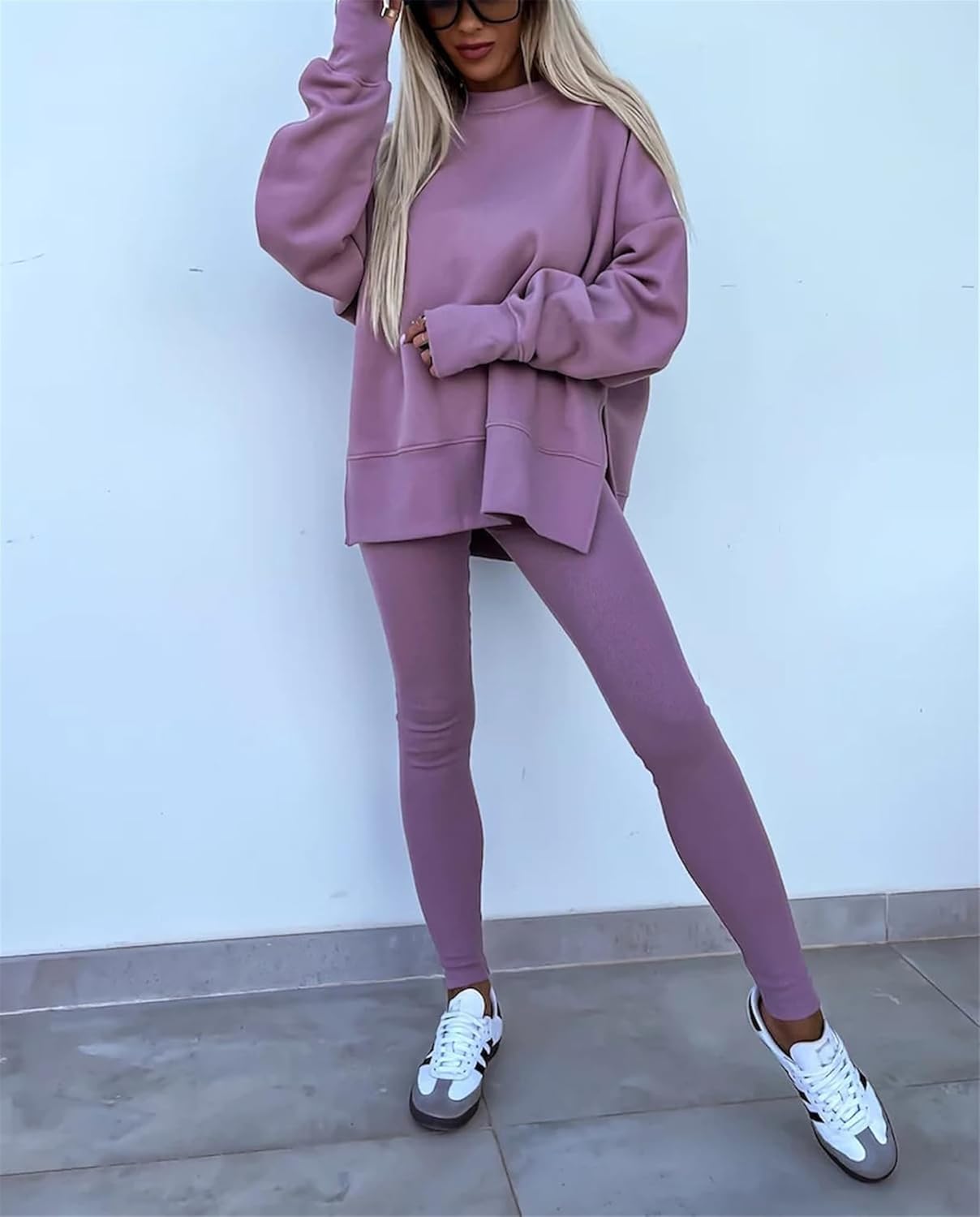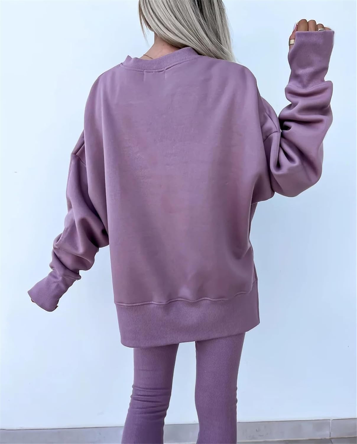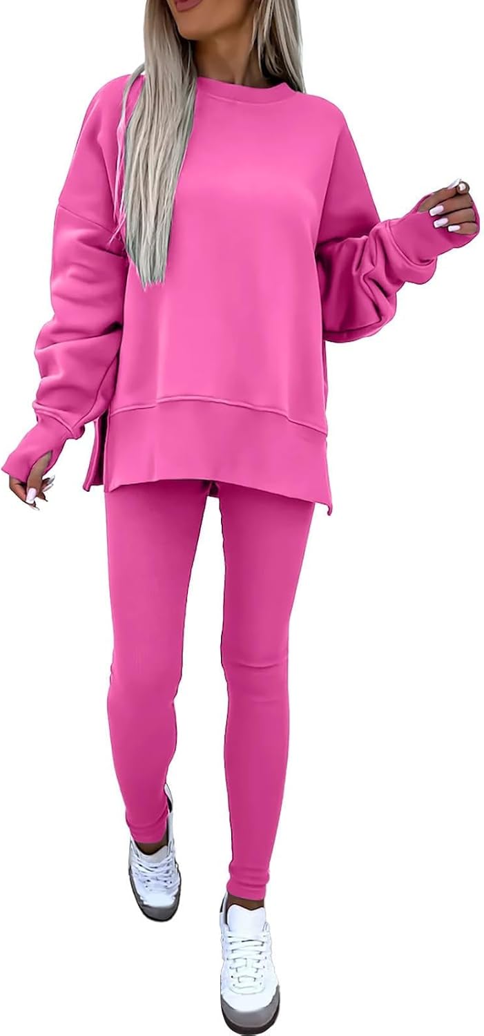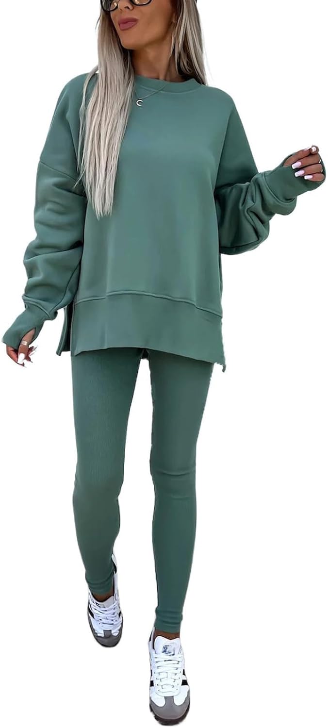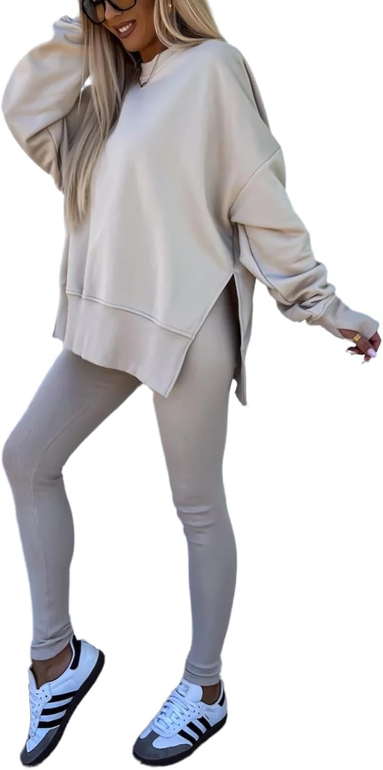 Feature: Pants sets women 2 piece outfits, solid color set, long sleeve oversize sweatshirt with thumb hole, stretchy skinny pants, slim fit yoga outfit for women, streetwear style