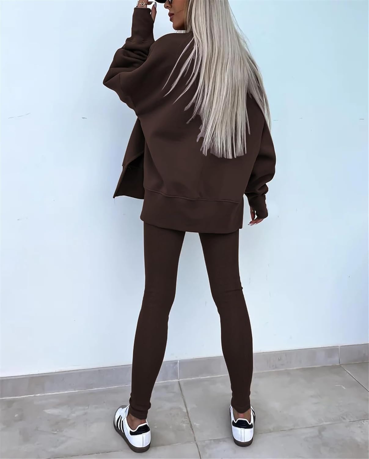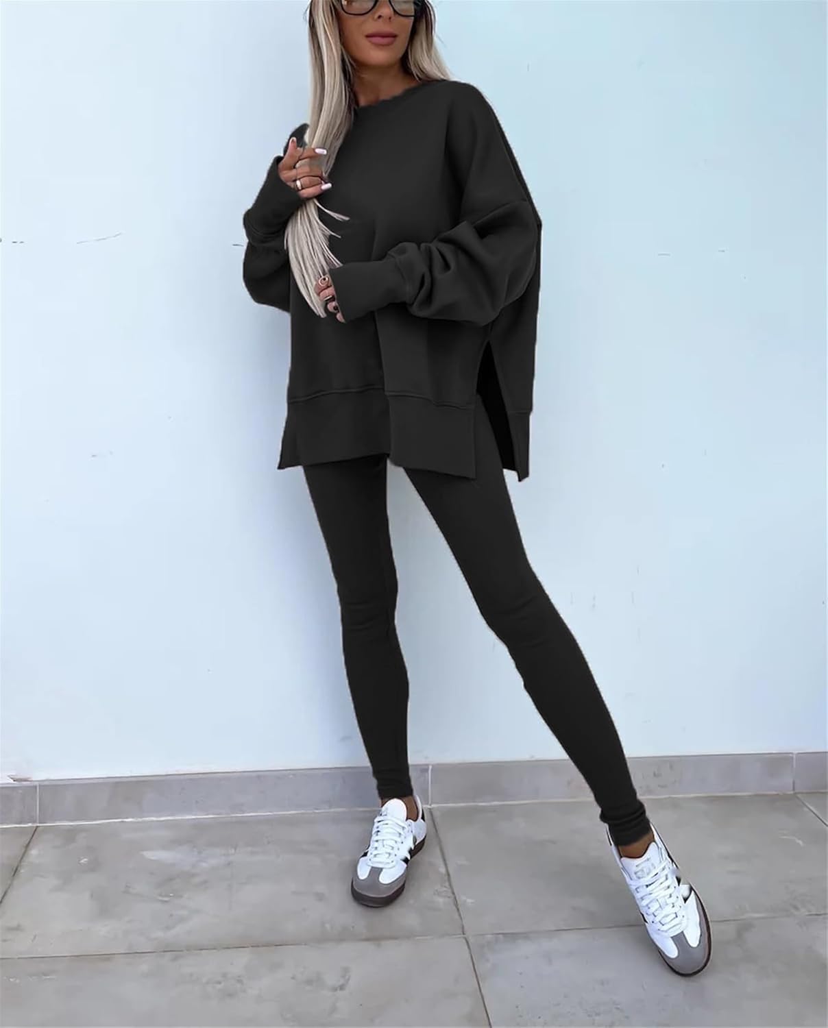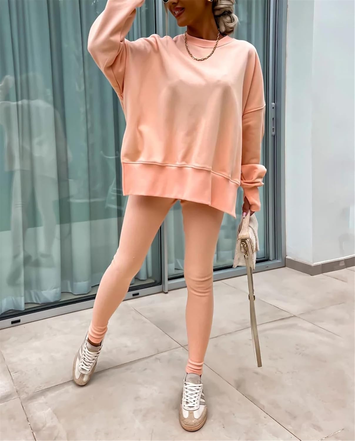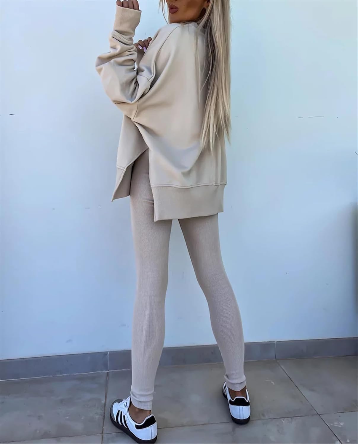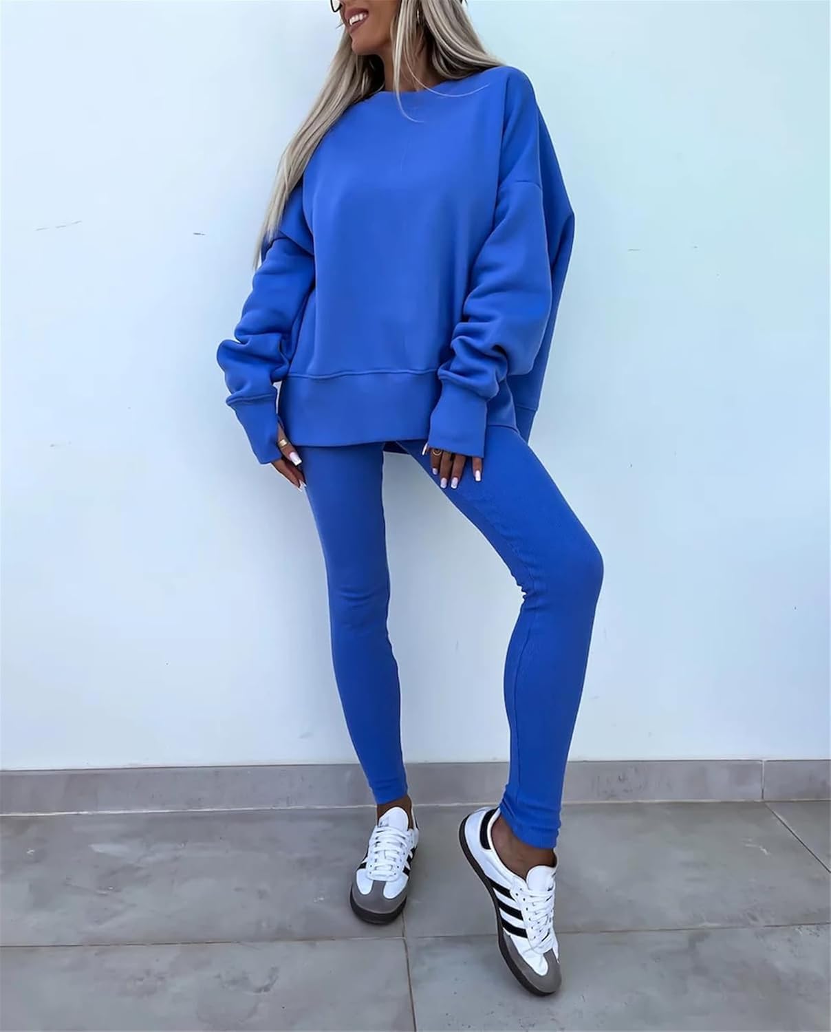 Feature: Pants sets women 2 piece outfits, solid color set, long sleeve oversize sweatshirt with thumb hole, stretchy skinny pants, slim fit yoga outfit for women, streetwear style