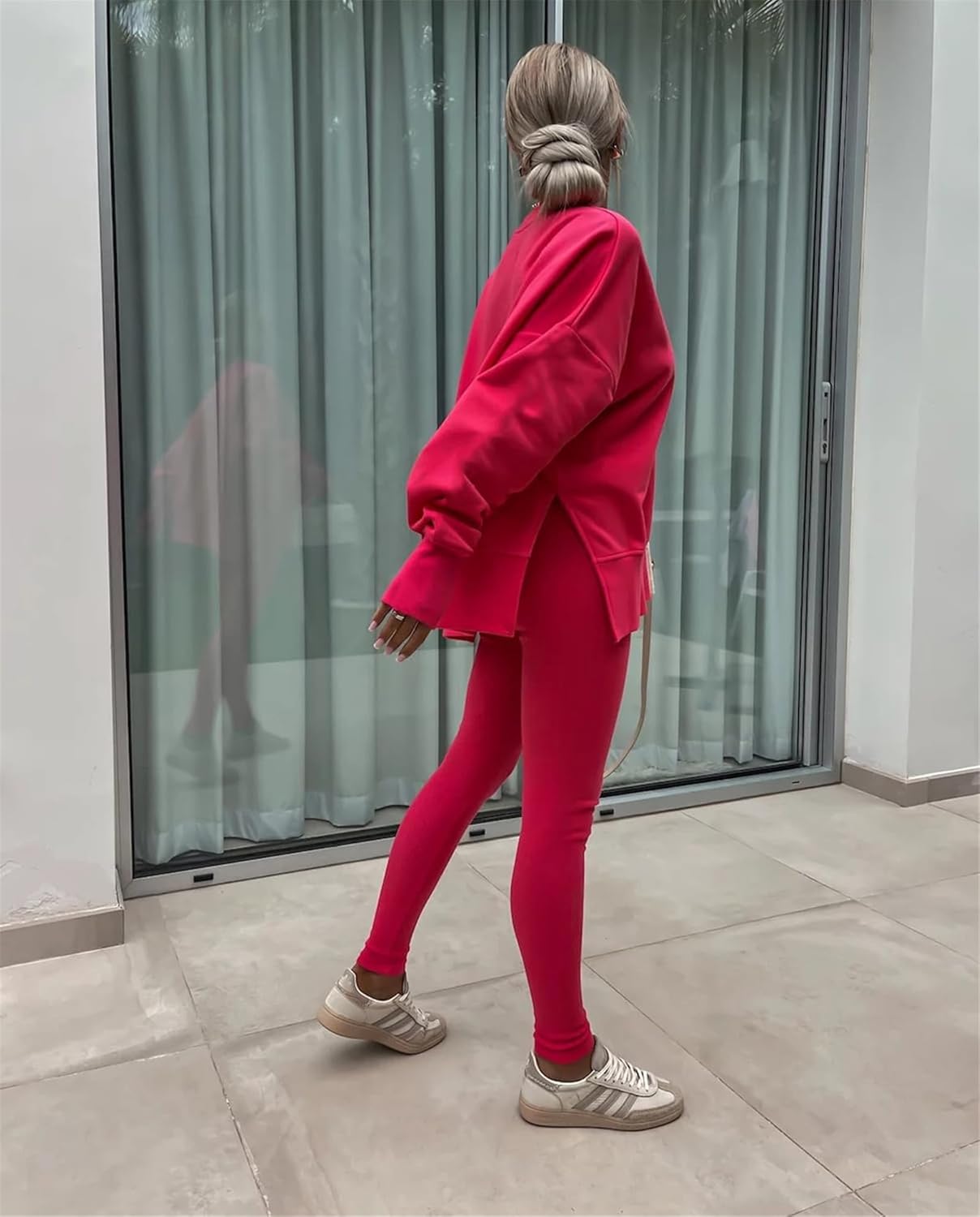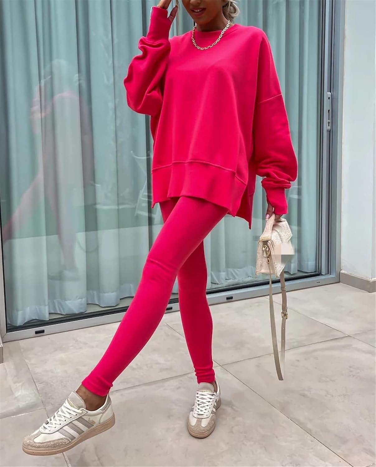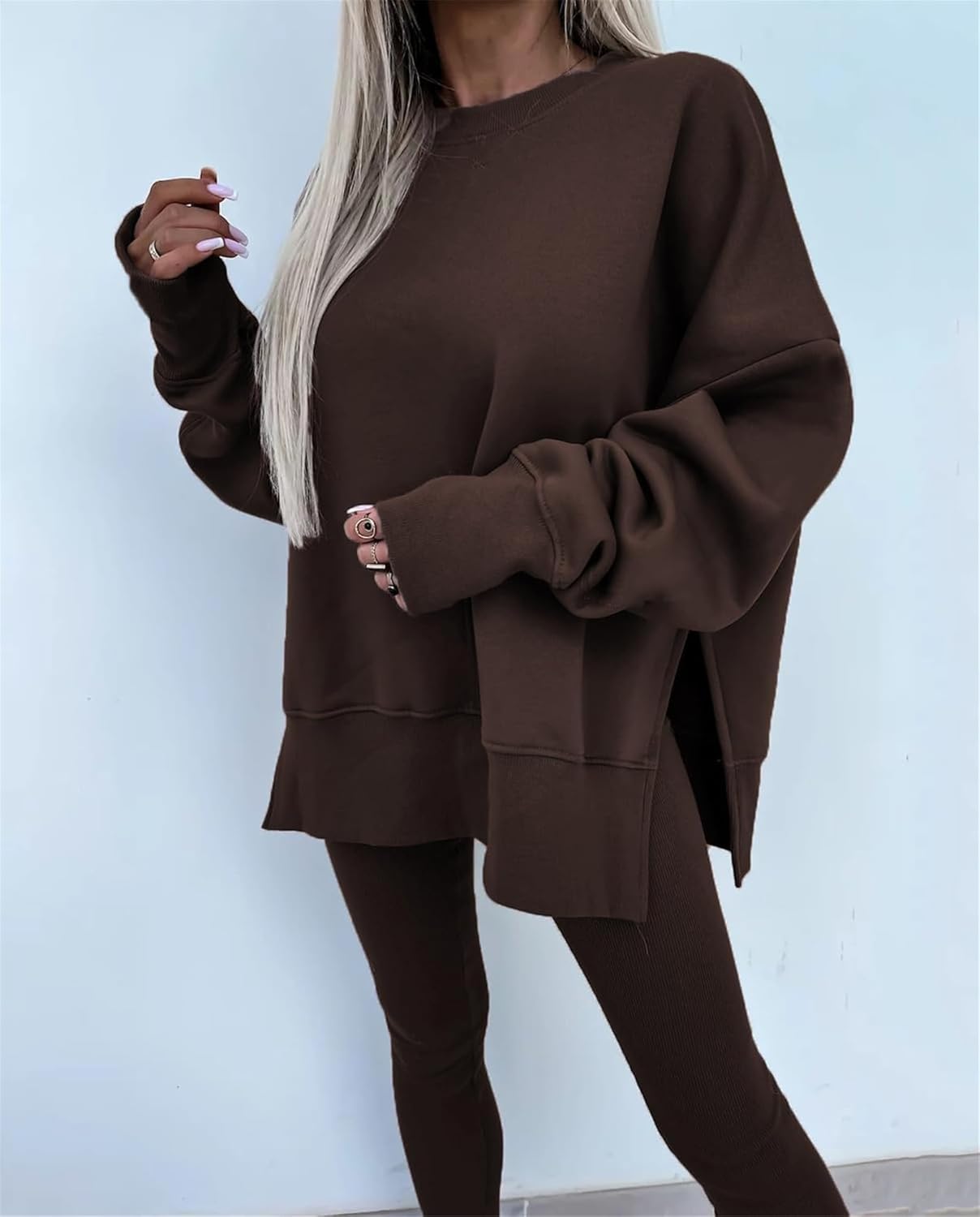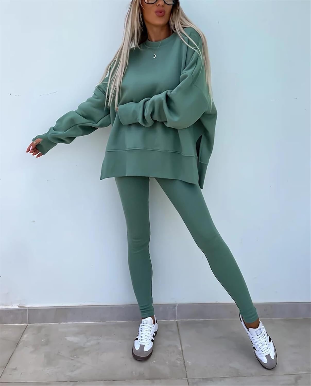 Feature: Pants sets women 2 piece outfits, solid color set, long sleeve oversize sweatshirt with thumb hole, stretchy skinny pants, slim fit yoga outfit for women, streetwear style